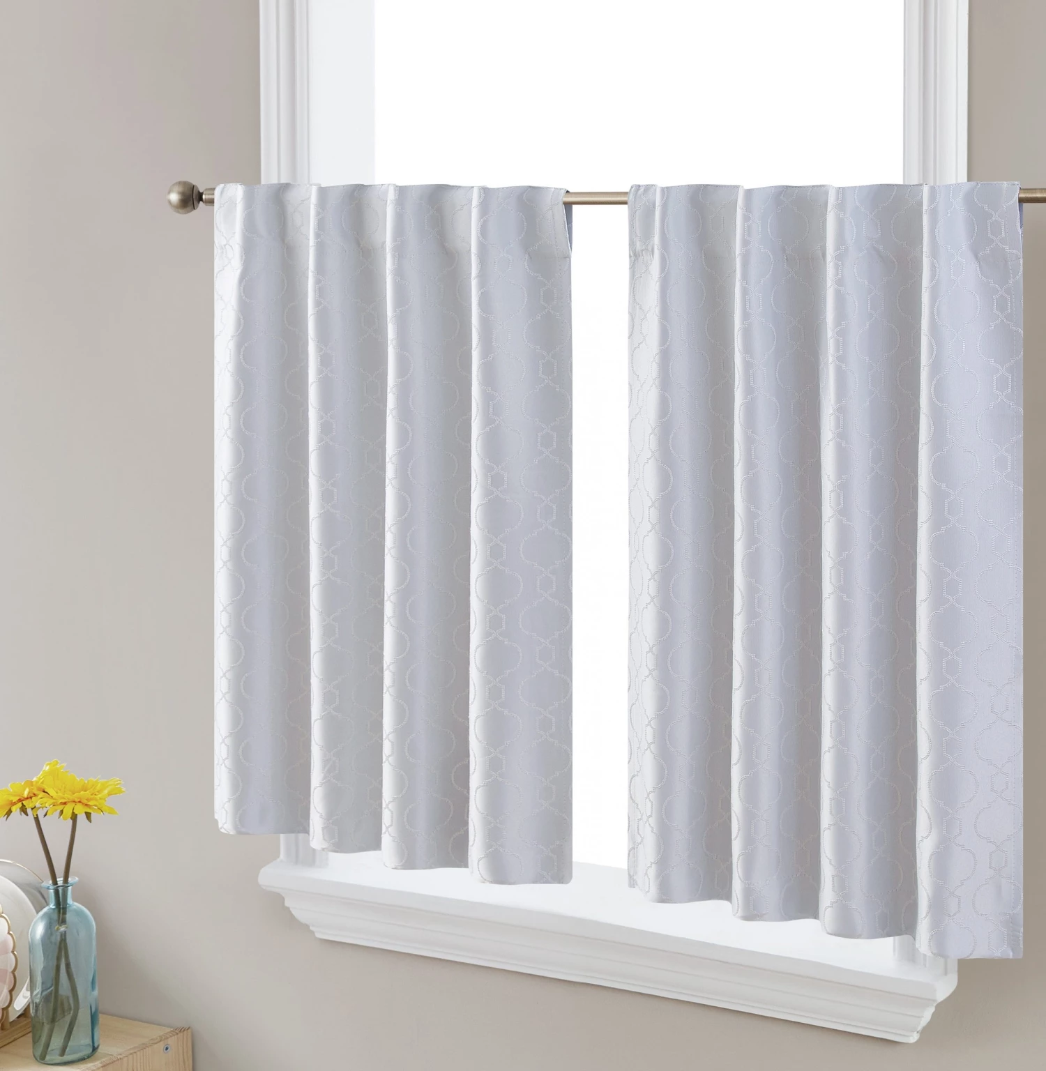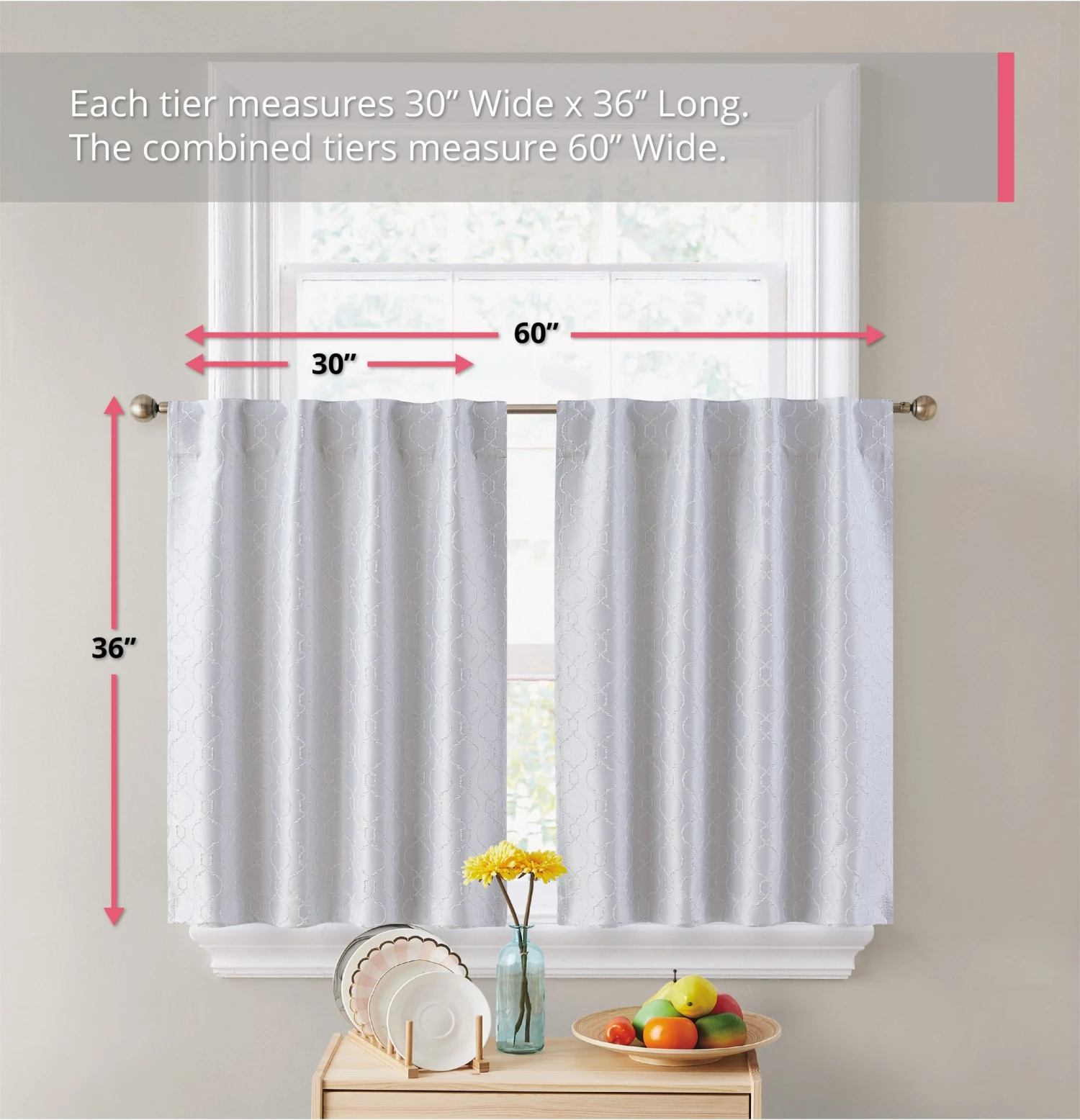 - Each package contains (2) two blackout back tab rod pocket tiers
