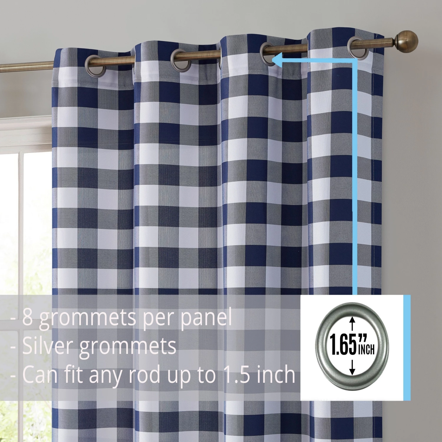 HLC.ME Faux Linen Curtains Hilltop Buffalo Check Grommet Curtain Panels (CHILD) – Set Of 2