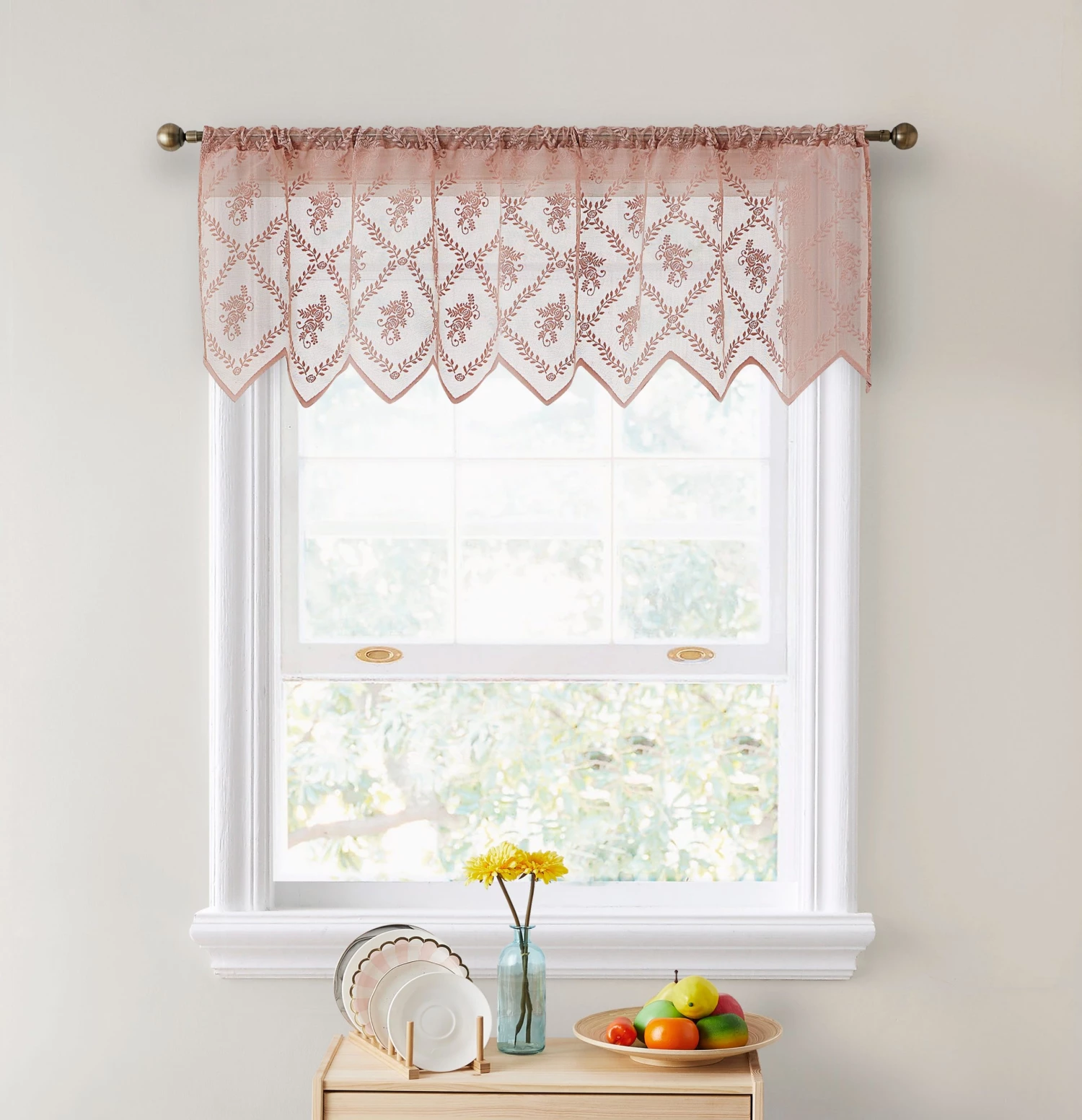HLC.ME Faux Linen Curtains Isabella Floral Sheer Rod Pocket Valance – Blush Pink