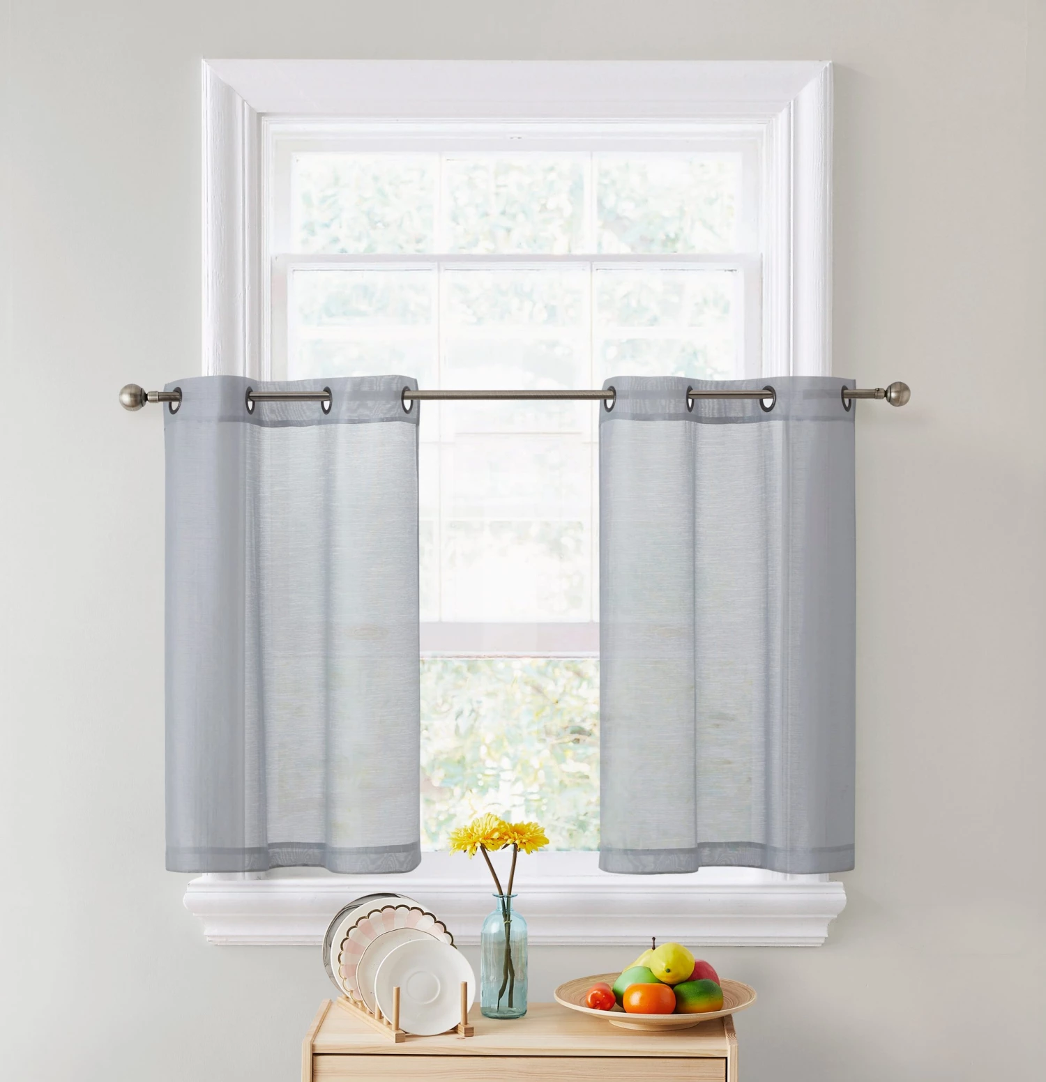 HLC.ME Faux Linen Curtains Lucento Sheer Grommet Cafe Tier Panels (Silver Grey) – Set Of 2