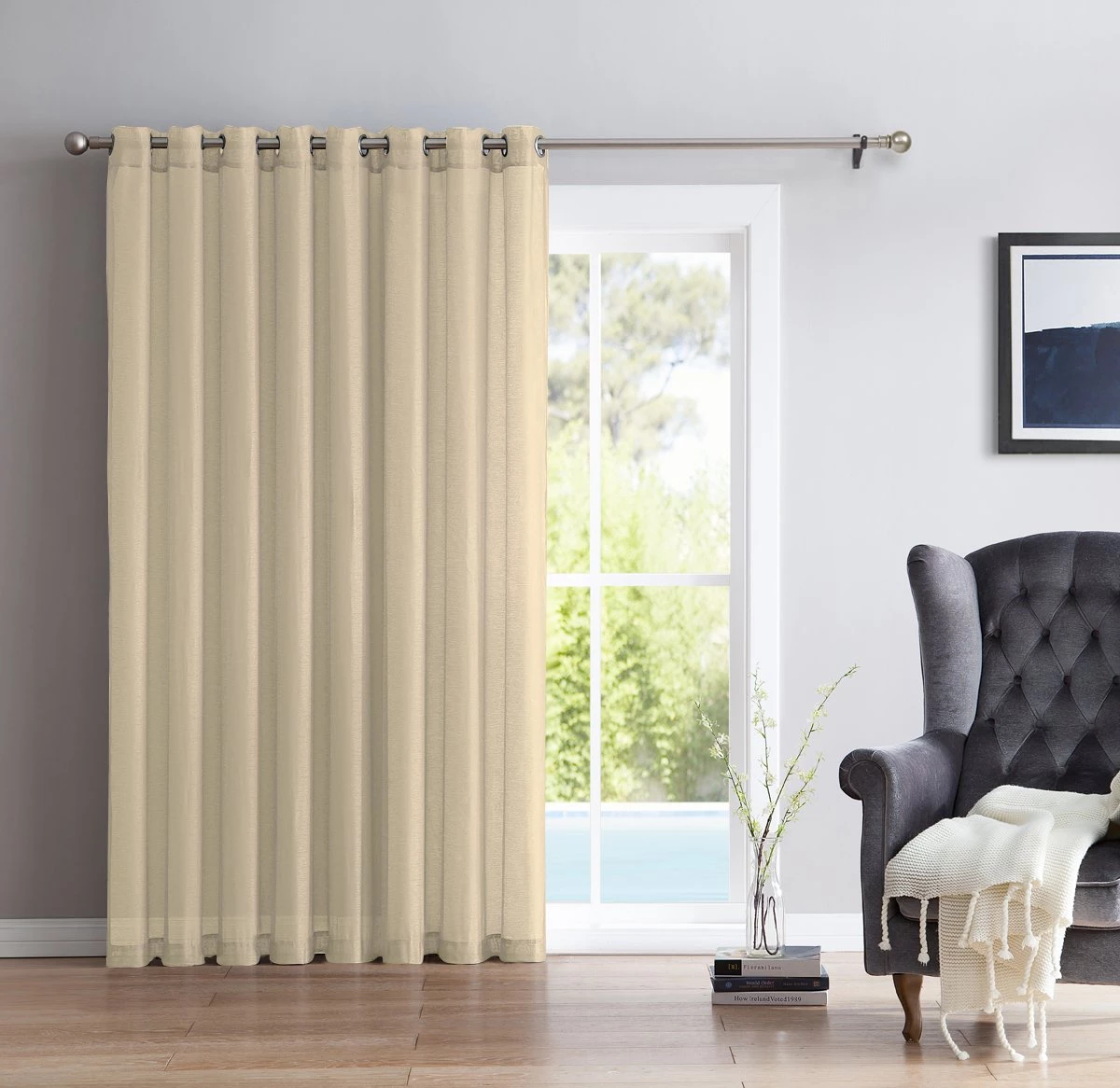 HLC.ME Faux Linen Curtains Lucento Sheer Grommet Patio Door Panel – Beige