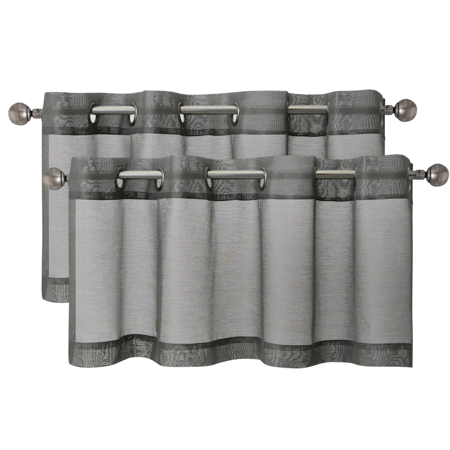 HLC.ME Faux Linen Curtains Lucento Sheer Grommet Valance – Charcoal Grey – Set Of 2