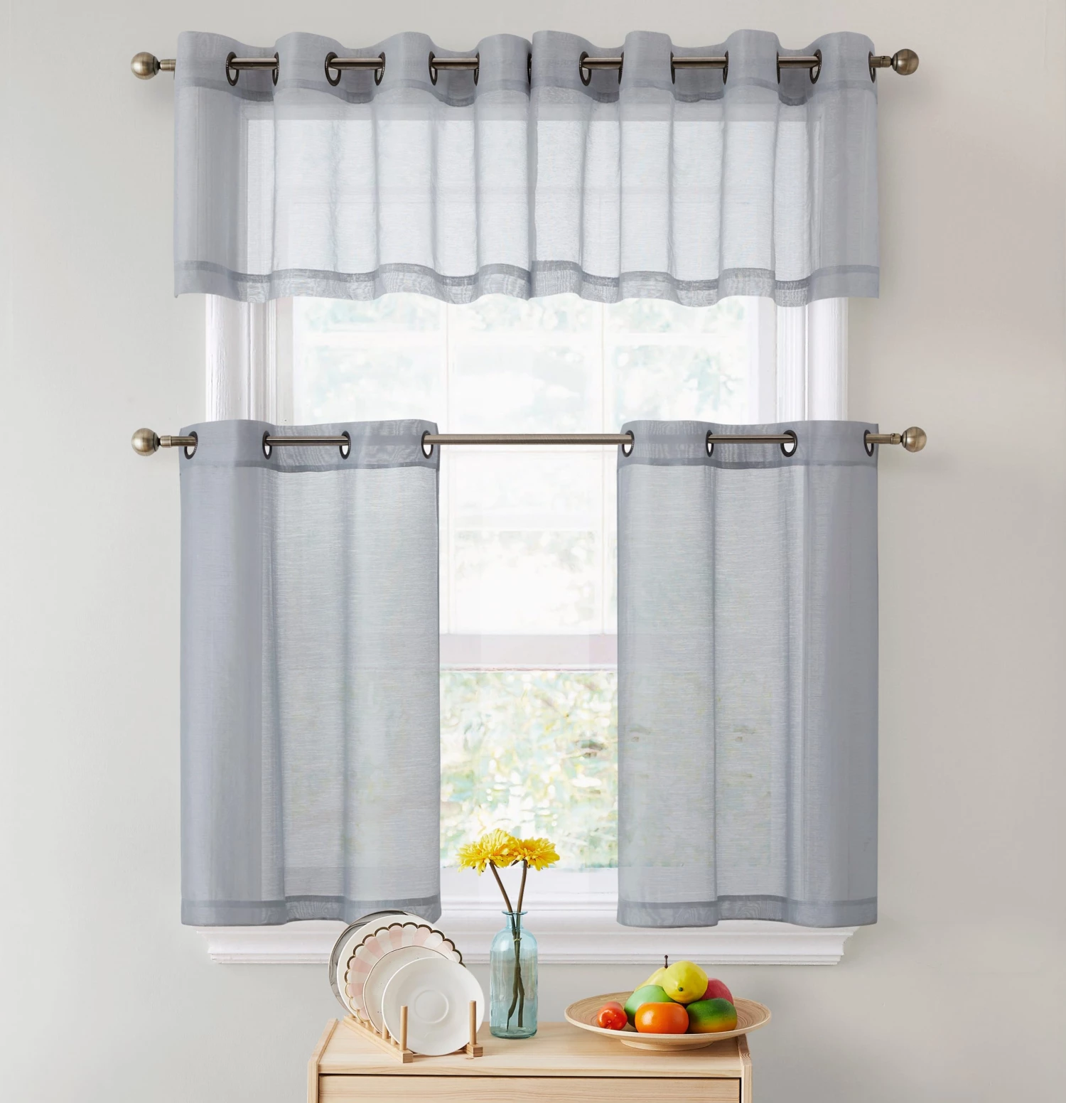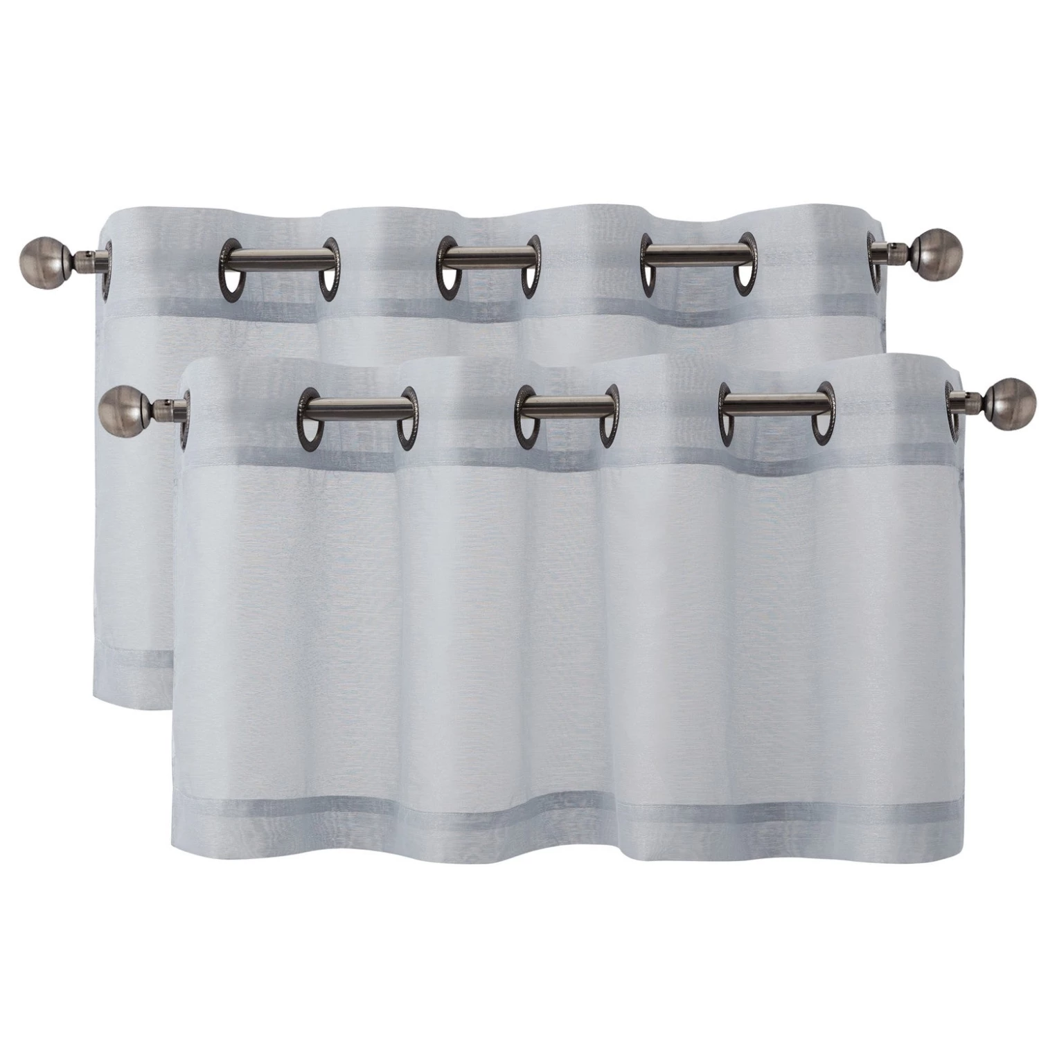 HLC.ME Faux Linen Curtains Lucento Sheer Grommet Valance – Silver Grey – Set Of 2