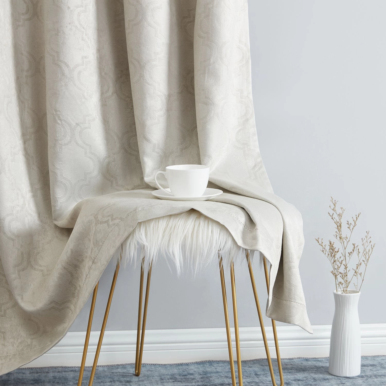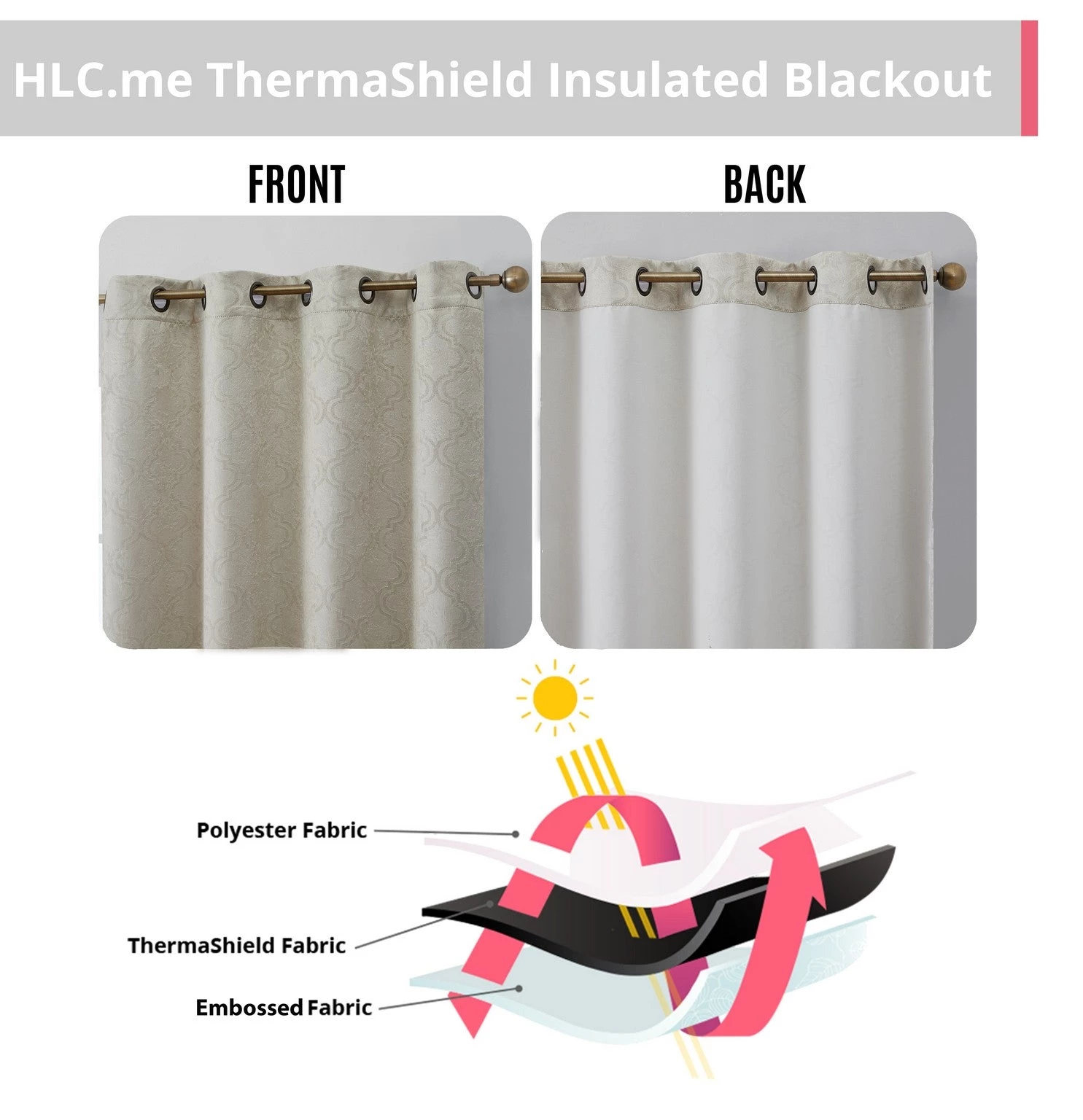 These thermal blackout grommet top curtains are manufactured as a triple weave technology. A triple weave technology is a denser fabric and is tightly sewn together with black yawns to insulate the heat and cold from entering and to achieve its blackout capabilities. The blackout grommet top curtain panel blocks out 90% of light for a great night sleep. Perfect for anyone who is a daytime sleepers who works at night and for any afternoon naps. A great add to a living room, bedroom, child’s room, playroom and workplace.