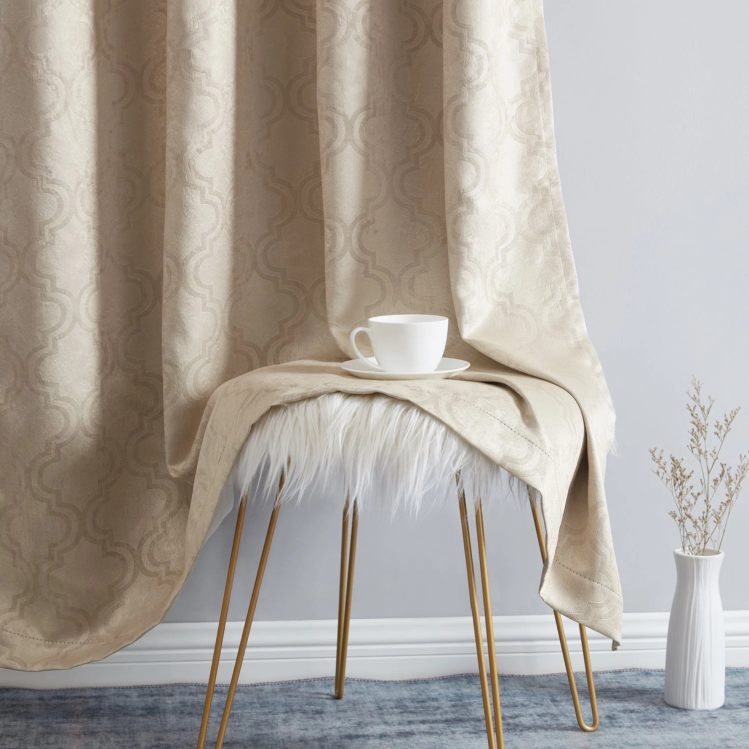 These thermal blackout grommet top curtains are manufactured as a triple weave technology. A triple weave technology is a denser fabric and is tightly sewn together with black yawns to insulate the heat and cold from entering and to achieve its blackout capabilities. The blackout grommet top curtain panel blocks out 90% of light for a great night sleep. Perfect for anyone who is a daytime sleepers who works at night and for any afternoon naps. A great add to a living room, bedroom, child’s room, playroom and workplace.