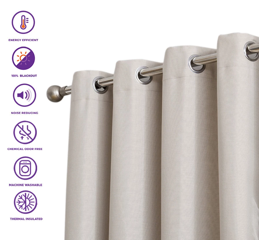 HLC.ME Faux Linen Curtains Textured Lined 100% Blackout Grommet Patio Door Panel – Beige