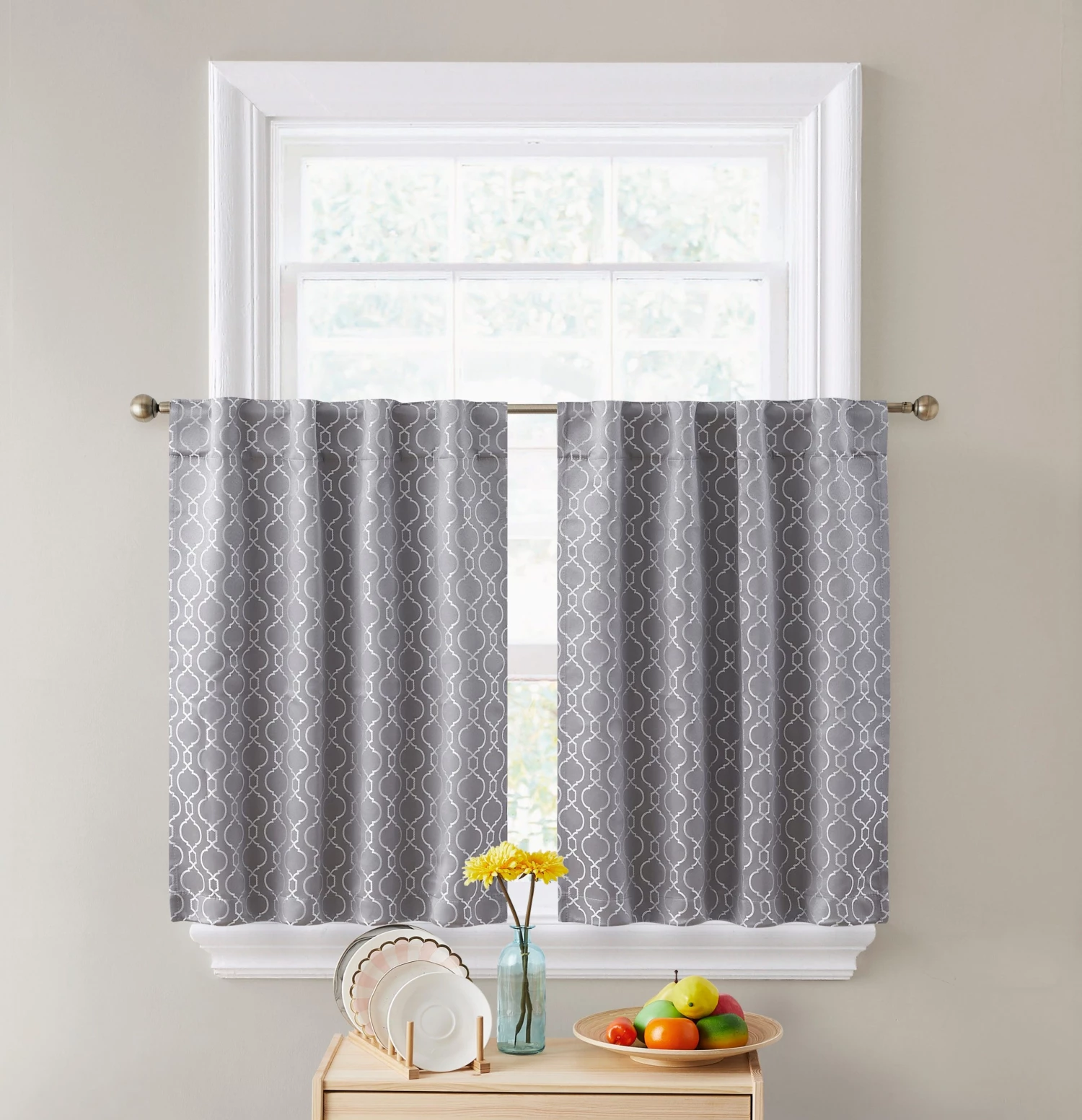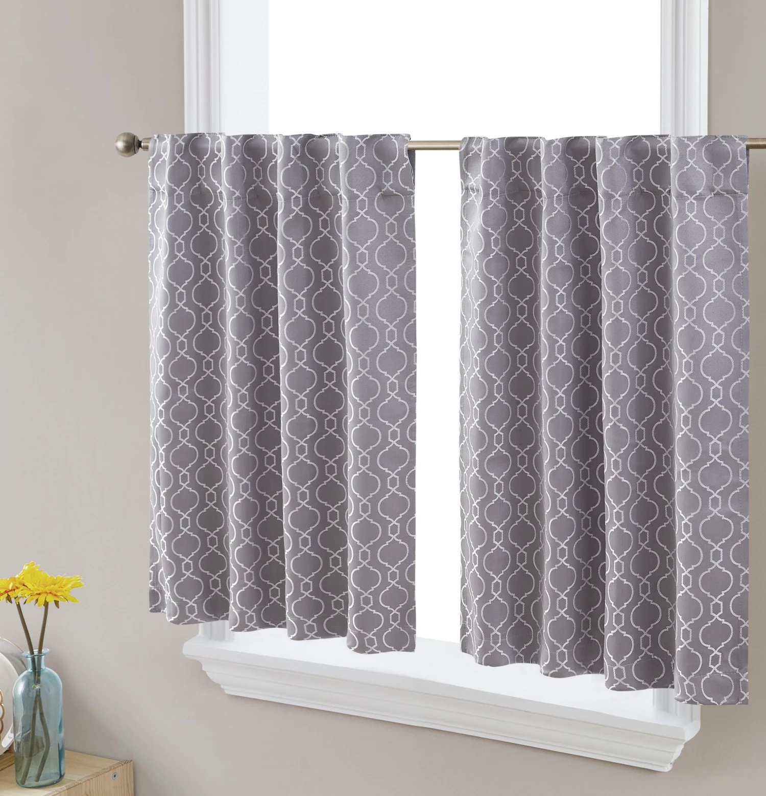 These moroccan geometric blackout tiers are manufactured as a thermal bond technology. A thermal bond technology is a 4 layers bonded and tightly sewn together with black yawns to insulate the heat and cold from entering and to achieve its blackout capabilities. The blackout curtain tiers blocks out 100% of light for a great night sleep. A great add to a living room, bedroom, childs room, playroom and workplace.