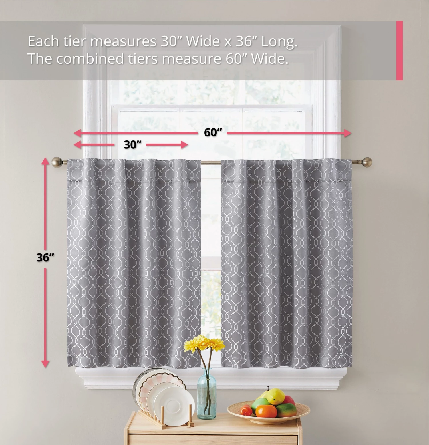 - Each package contains (2) two blackout back tab rod pocket tiers