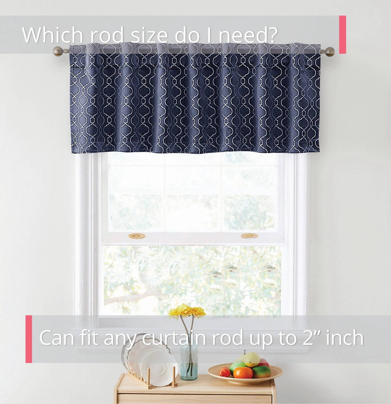 These moroccan geometric blackout valances are manufactured as a thermal bond technology. A thermal bond technology is a 4 layers bonded and tightly sewn together with black yawns to insulate the heat and cold from entering and to achieve its blackout capabilities. The blackout valance panel blocks out 100% of light for a great night sleep. A great add to a living room, bedroom, childs room, playroom and workplace.
