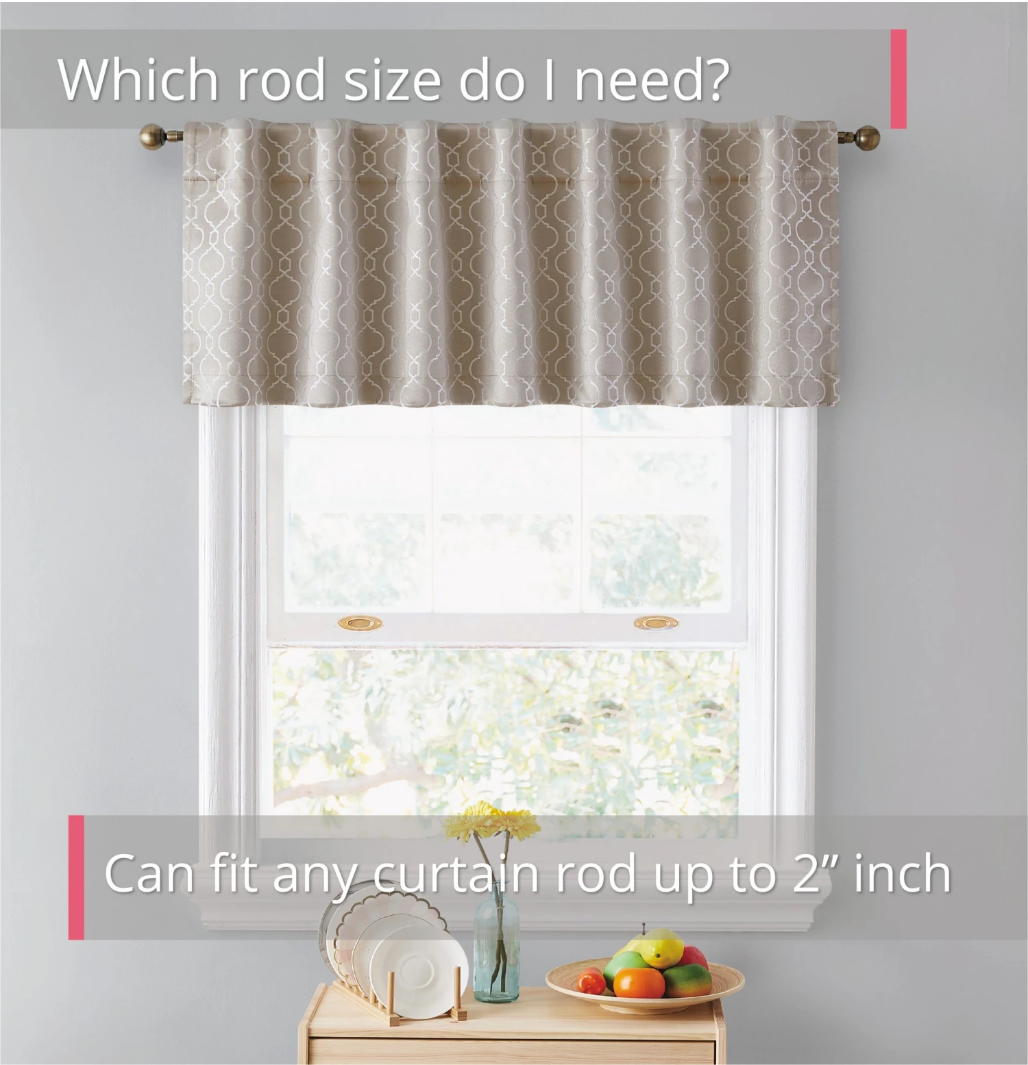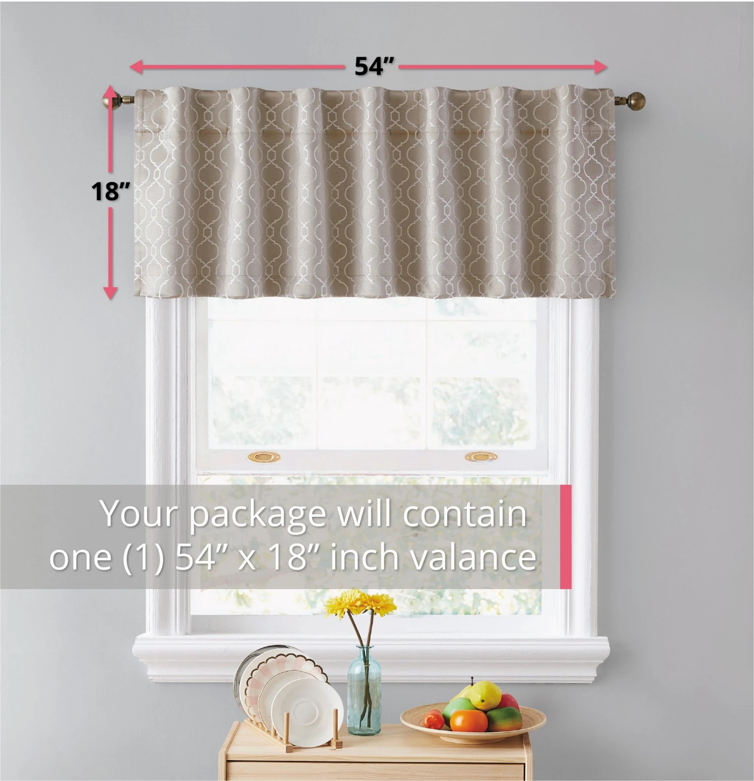 HLC.ME Franklin Moroccan Trellis 100% Blackout Back Tab Valance – Taupe