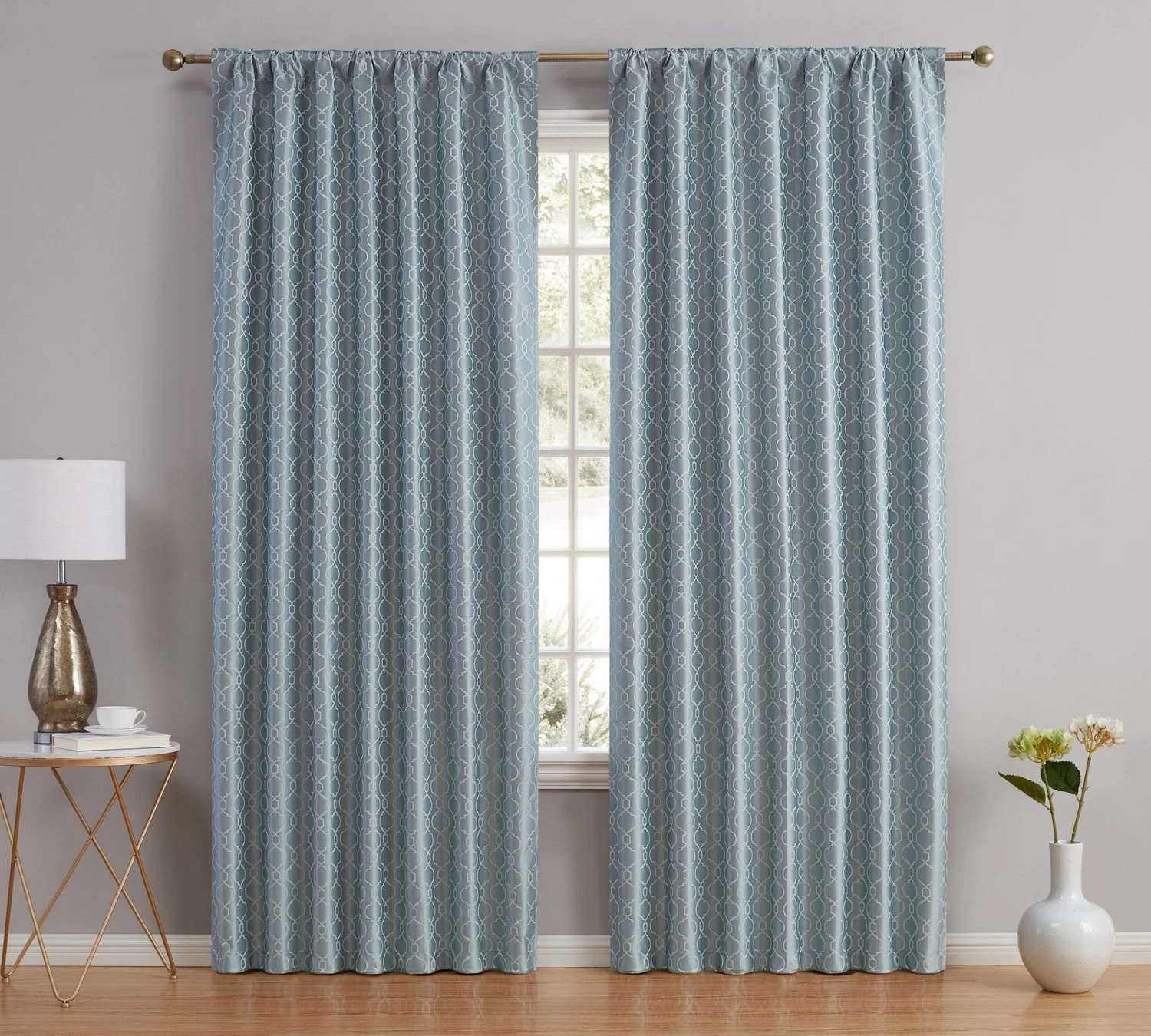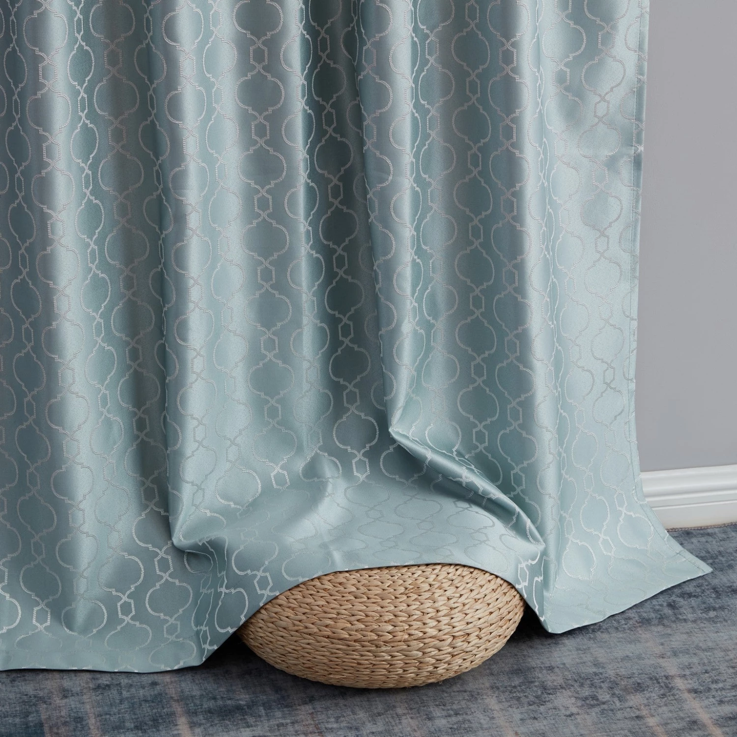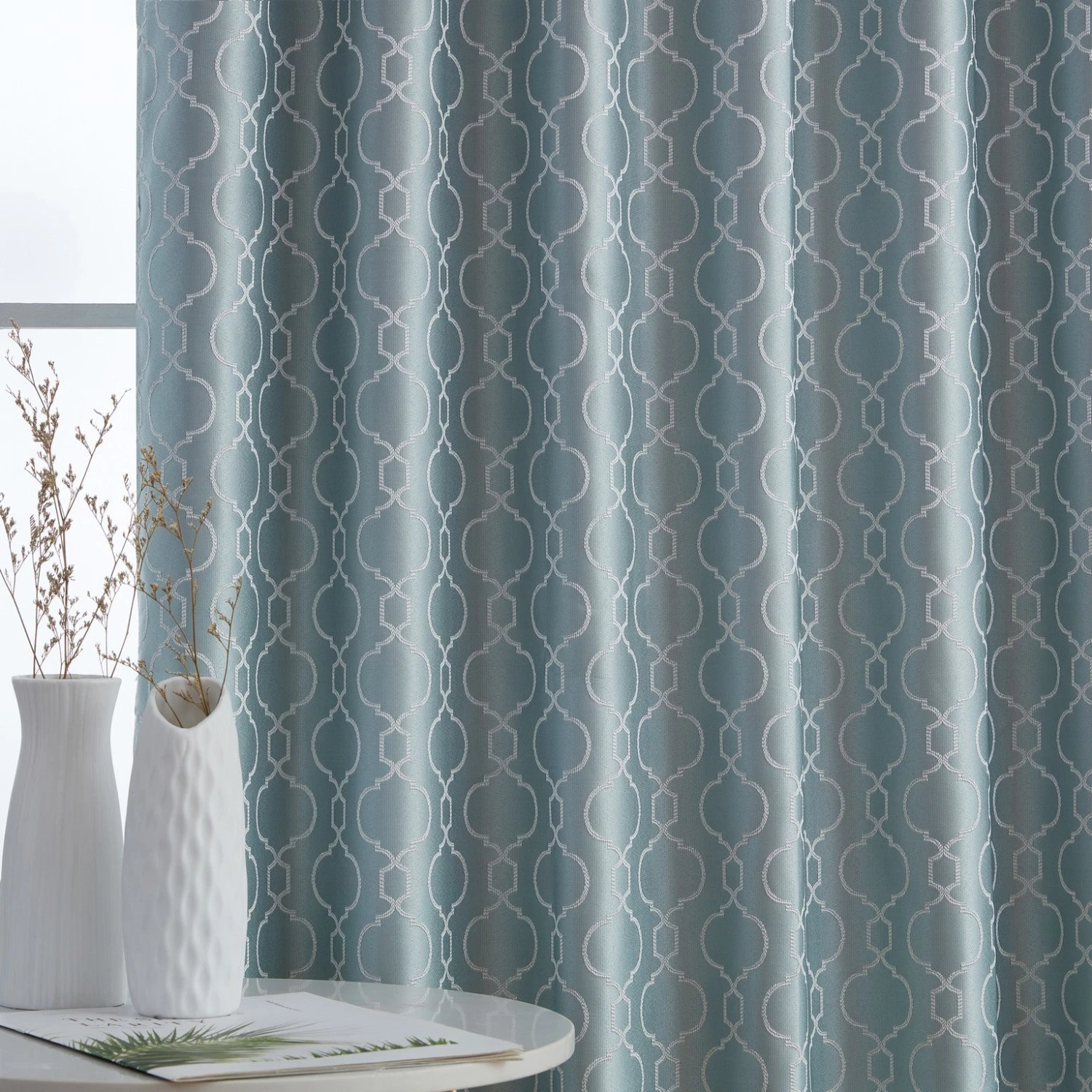 HLC.ME Franklin Moroccan Trellis 100% Complete Blackout Back Tab Curtains – Light Blue – Set Of 2 Blackout Curtains