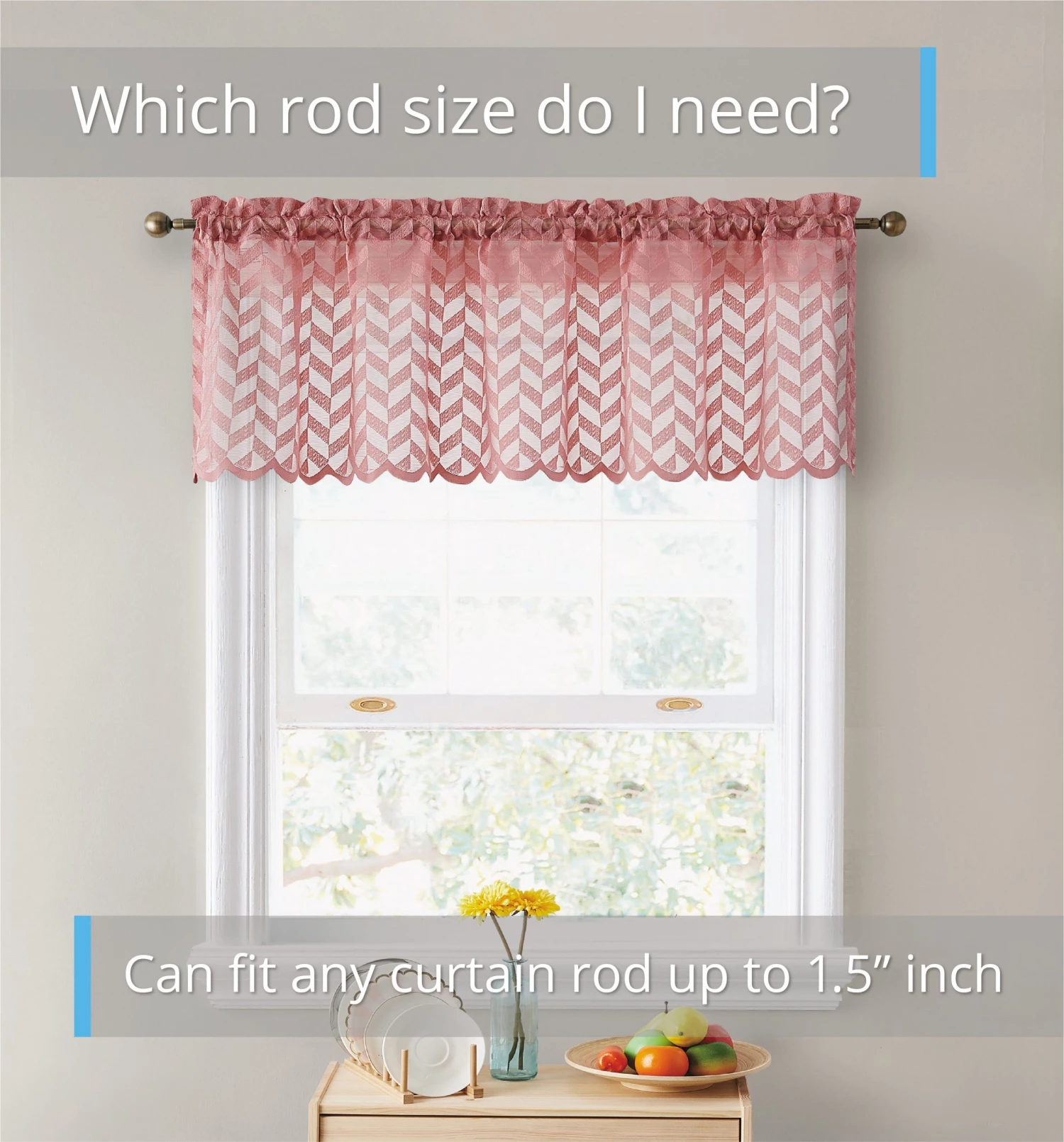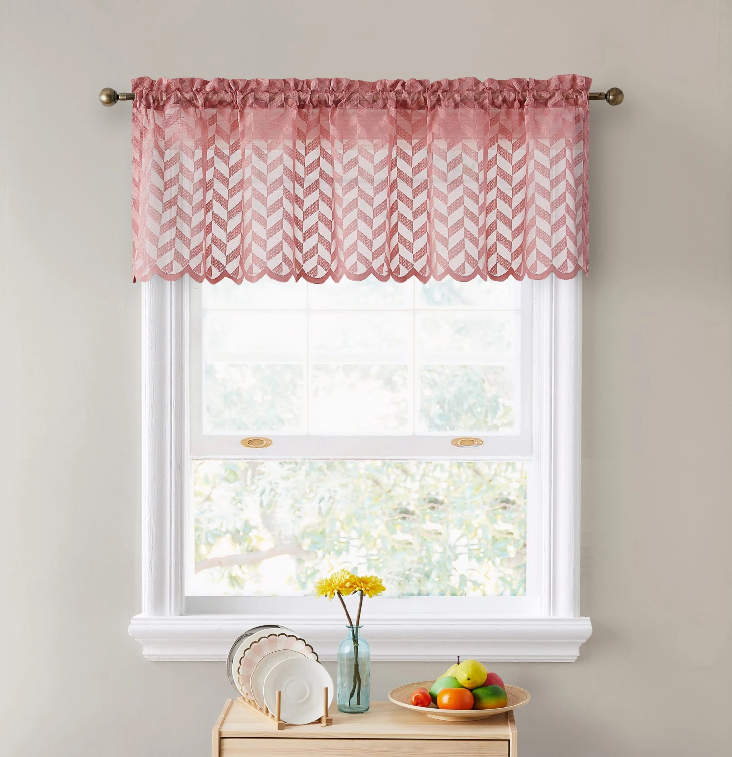 HLC.ME Herringbone Lace Sheer Rod Pocket Cafe Valance – Pink