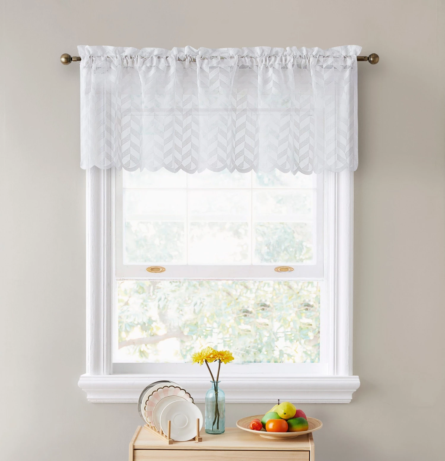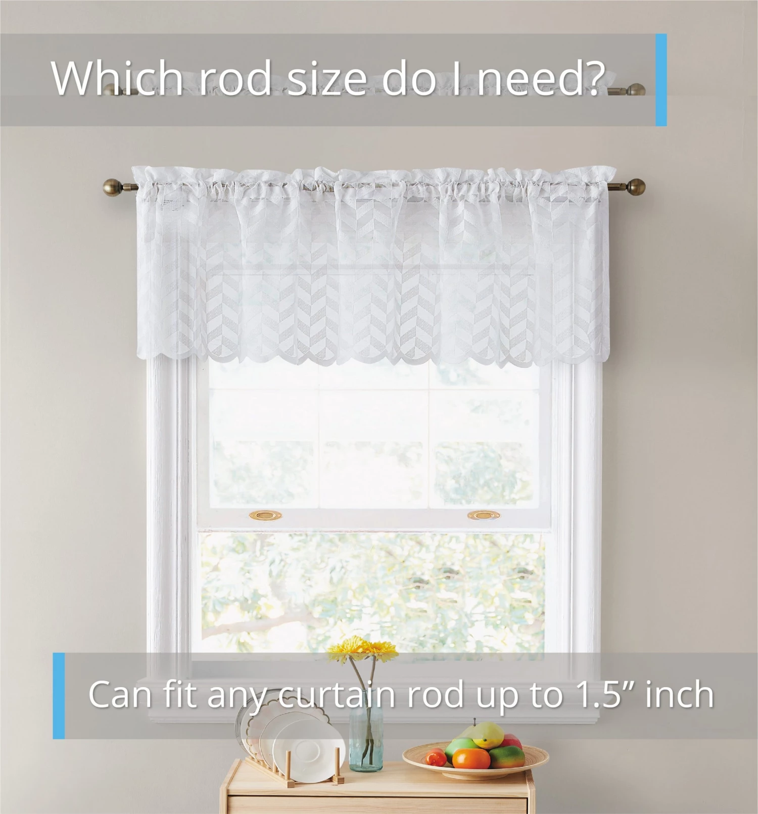 HLC.ME Herringbone Lace Sheer Rod Pocket Cafe Valance – White Faux Linen Curtains