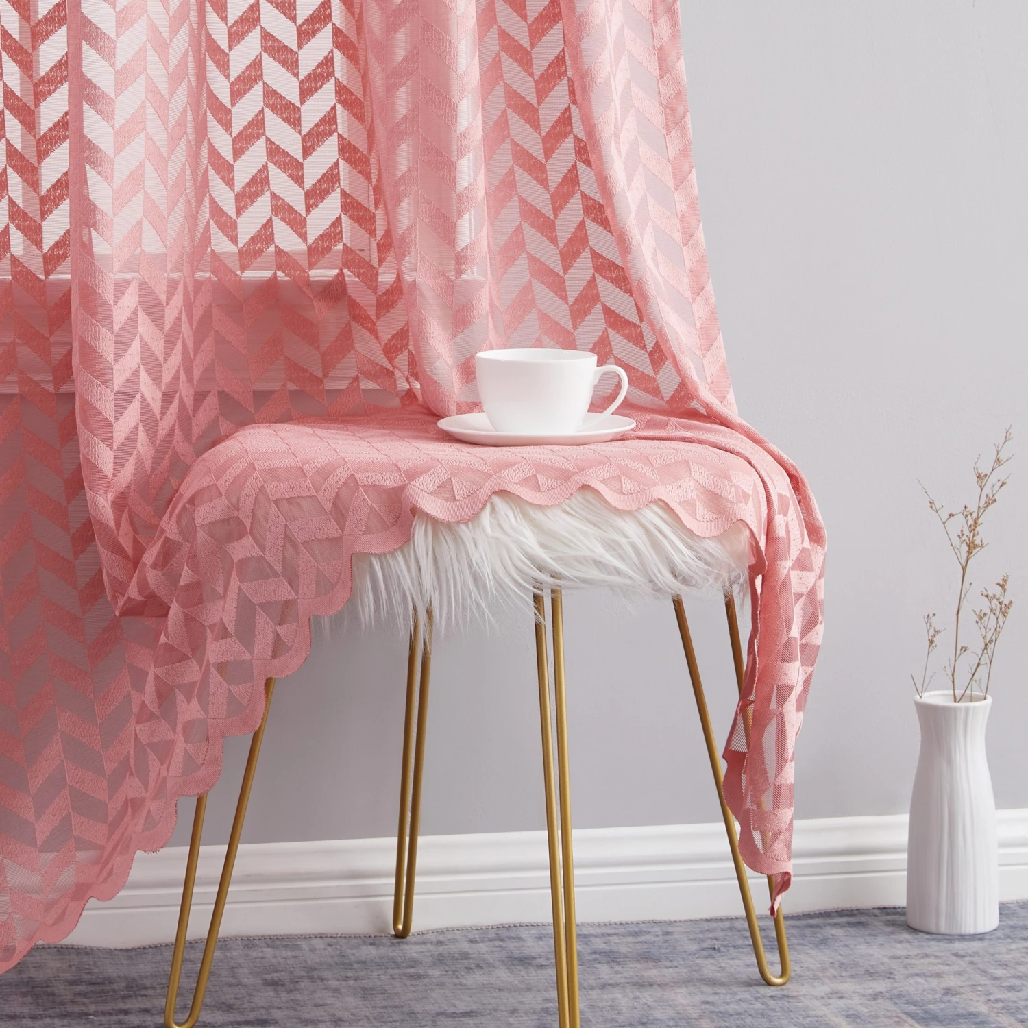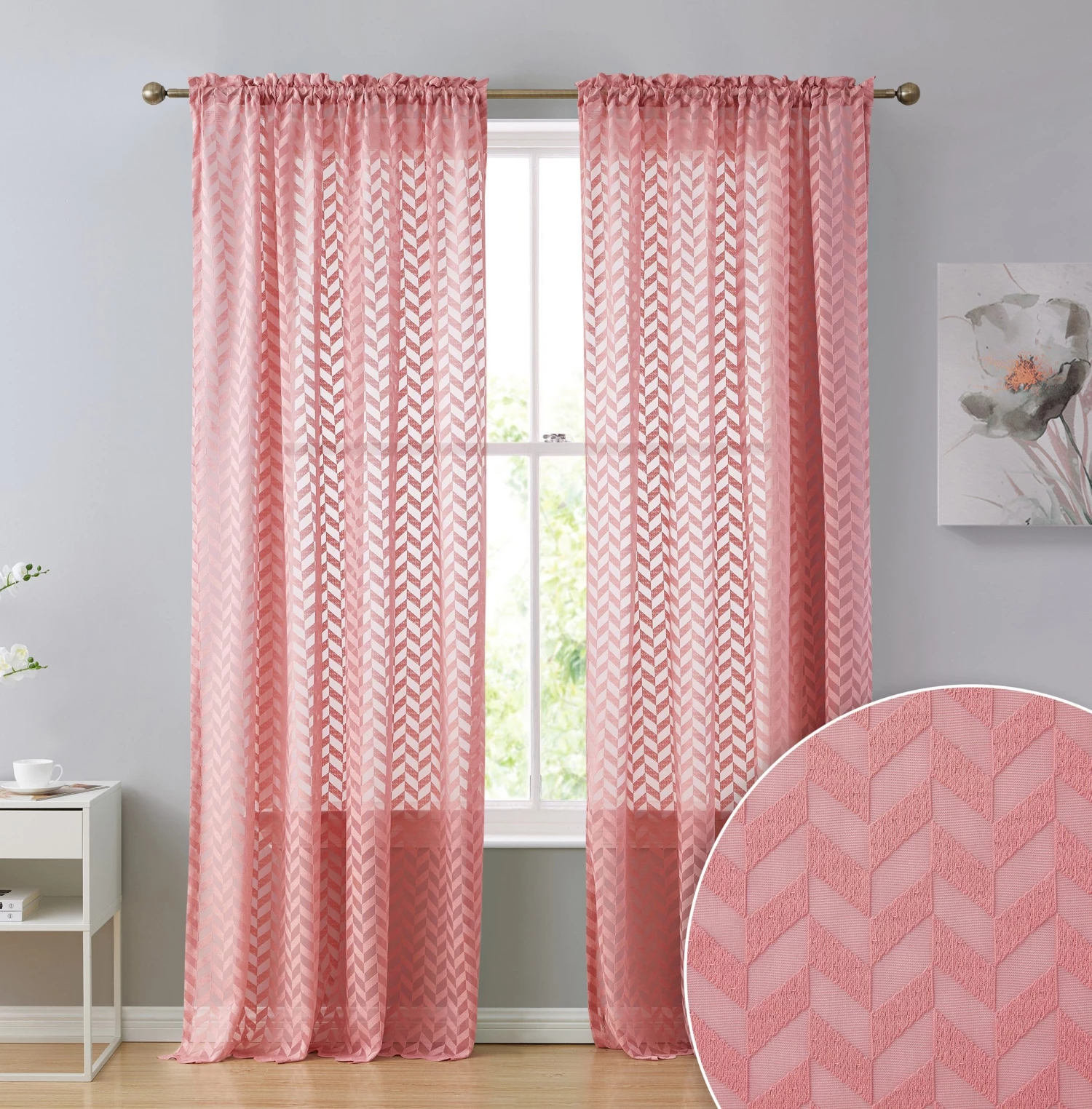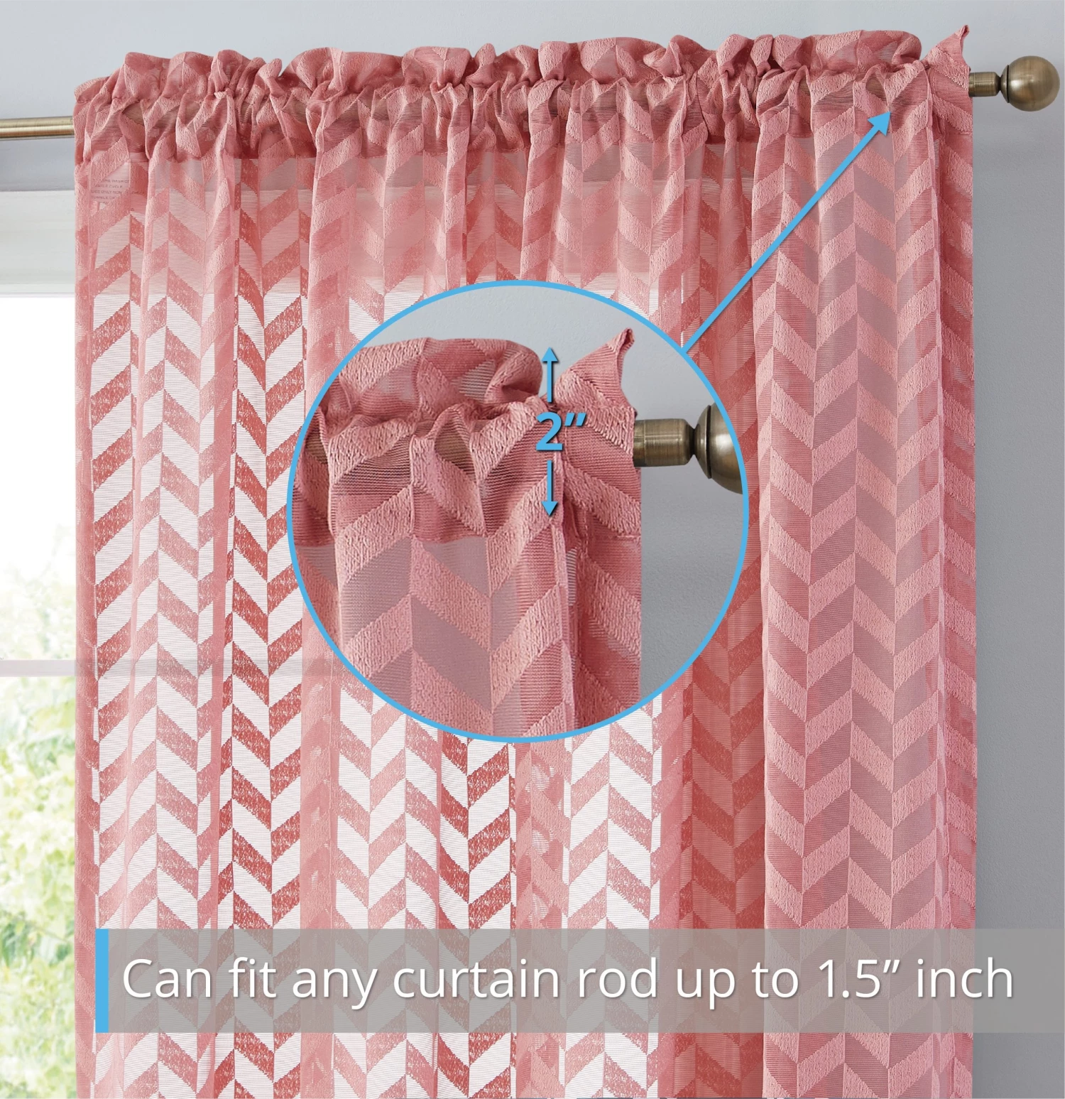 HLC.ME Herringbone Lace Sheer Rod Pocket Curtain Panels – Blush Pink – Set Of 2 Sheer Curtains