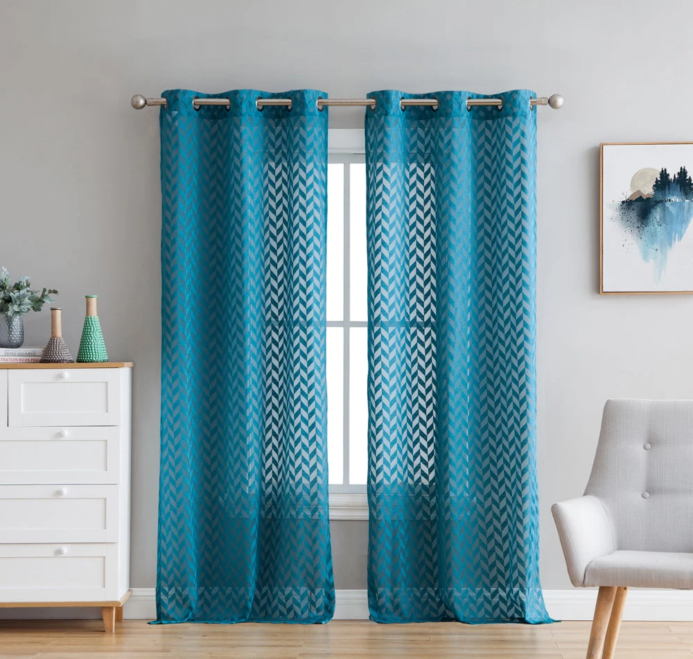HLC.ME Herringbone Lace Sheer Rod Pocket Curtain Panels – Grey Teal – Set Of 2