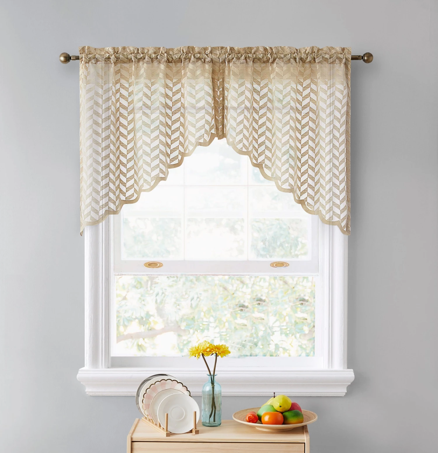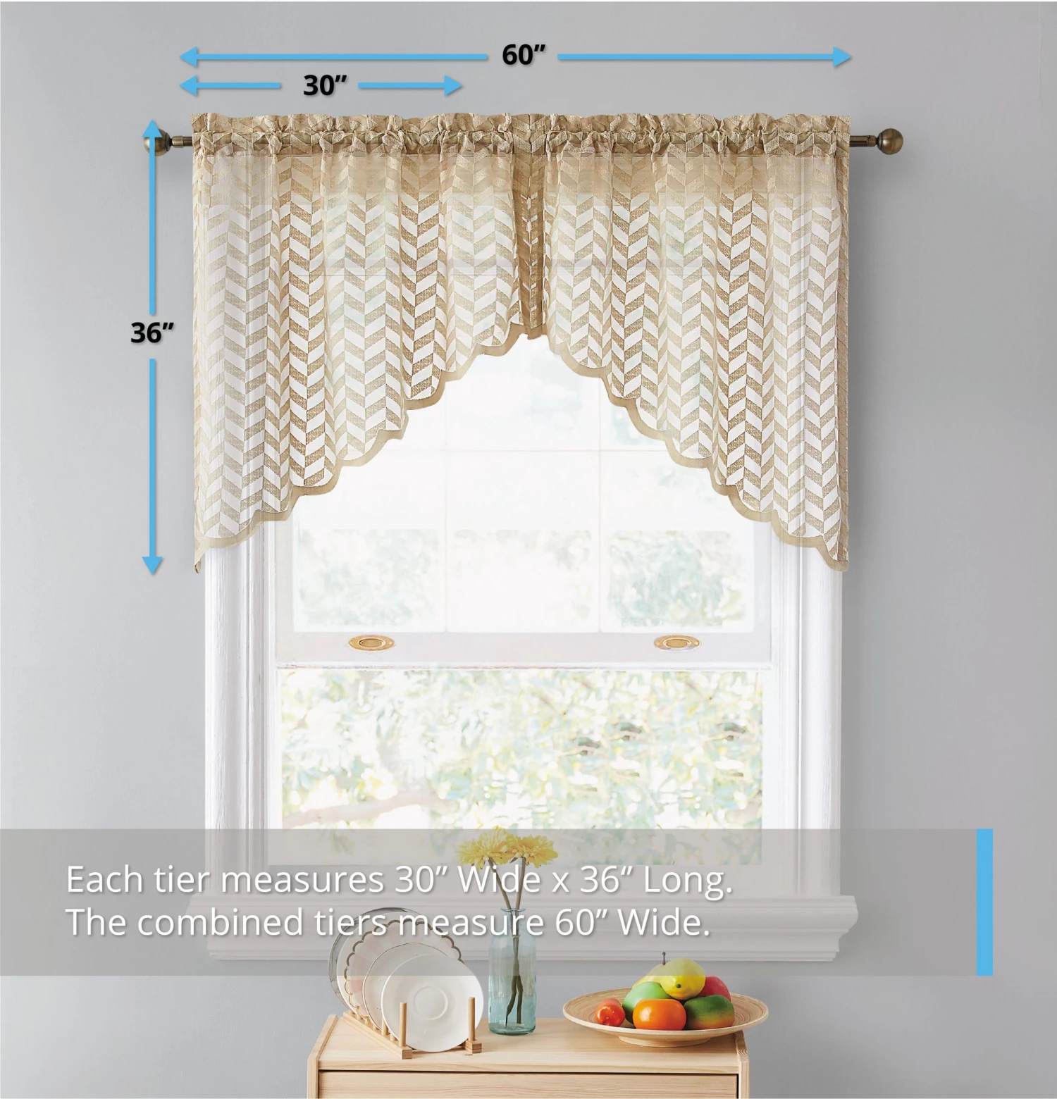 HLC.ME Herringbone Lace Sheer Rod Pocket Curtain Swags – Taupe – Set Of 2