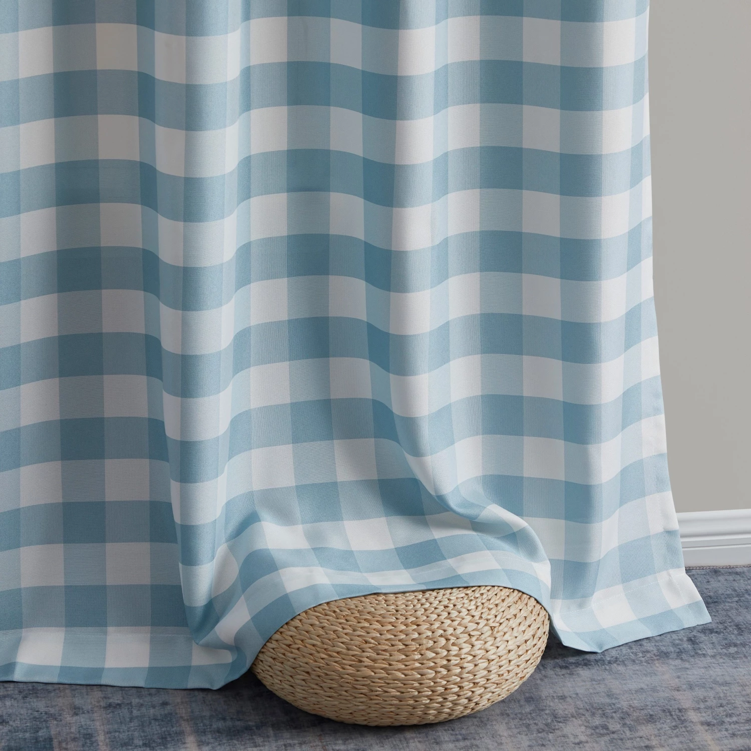 HLC.ME Hilltop Buffalo Check Textured Grommet Curtain Panels – Farmhouse Blue – Set Of 2