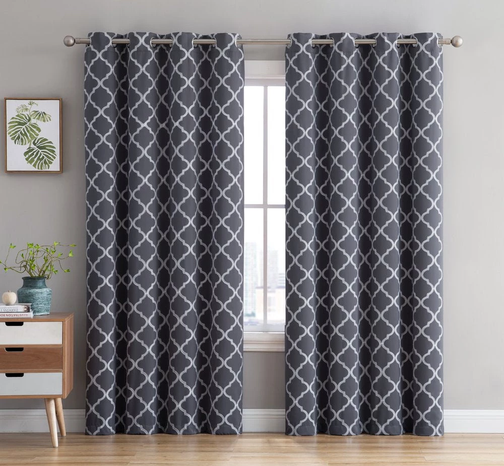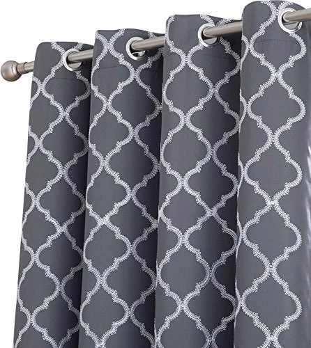 HLC.ME Lattice Embroidered Blackout Grommet Patio Door Panel – Grey