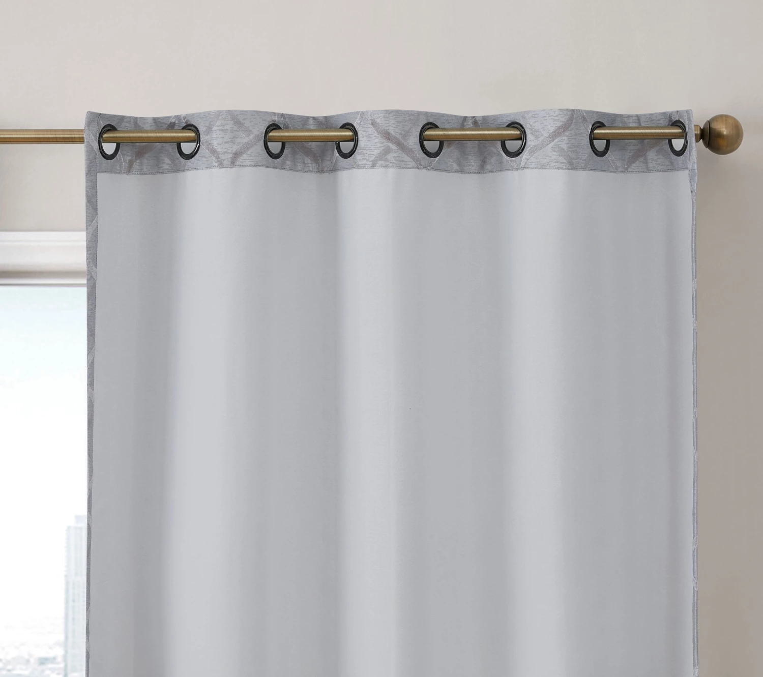 HLC.ME Lattice Flocked 100% Blackout Grommet Patio Door Panel – Light Grey Faux Linen Curtains
