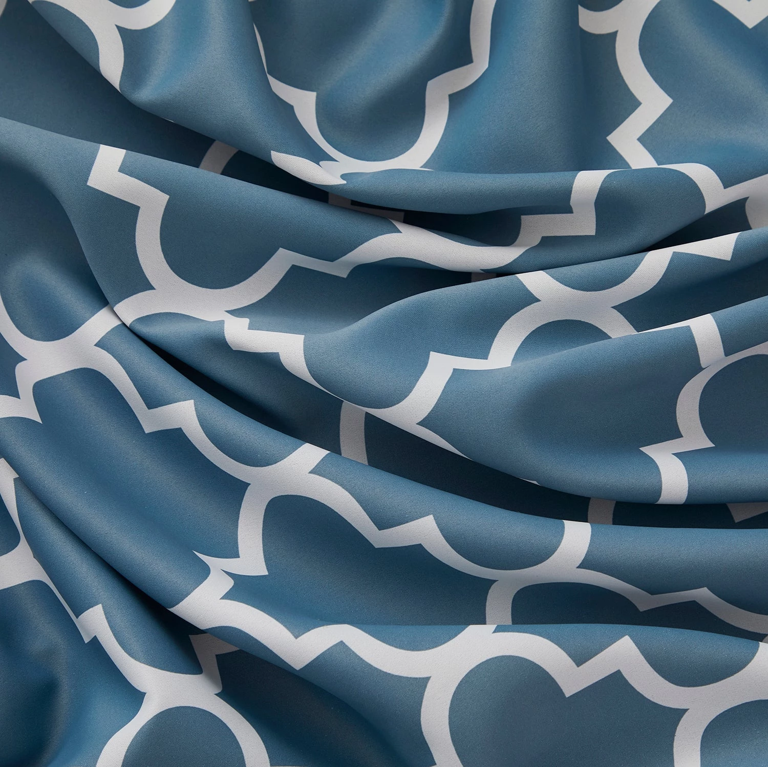 HLC.ME Lattice Print Blackout Grommet Curtain Panels – Dusty Blue – Set Of 2 Blackout Curtains
