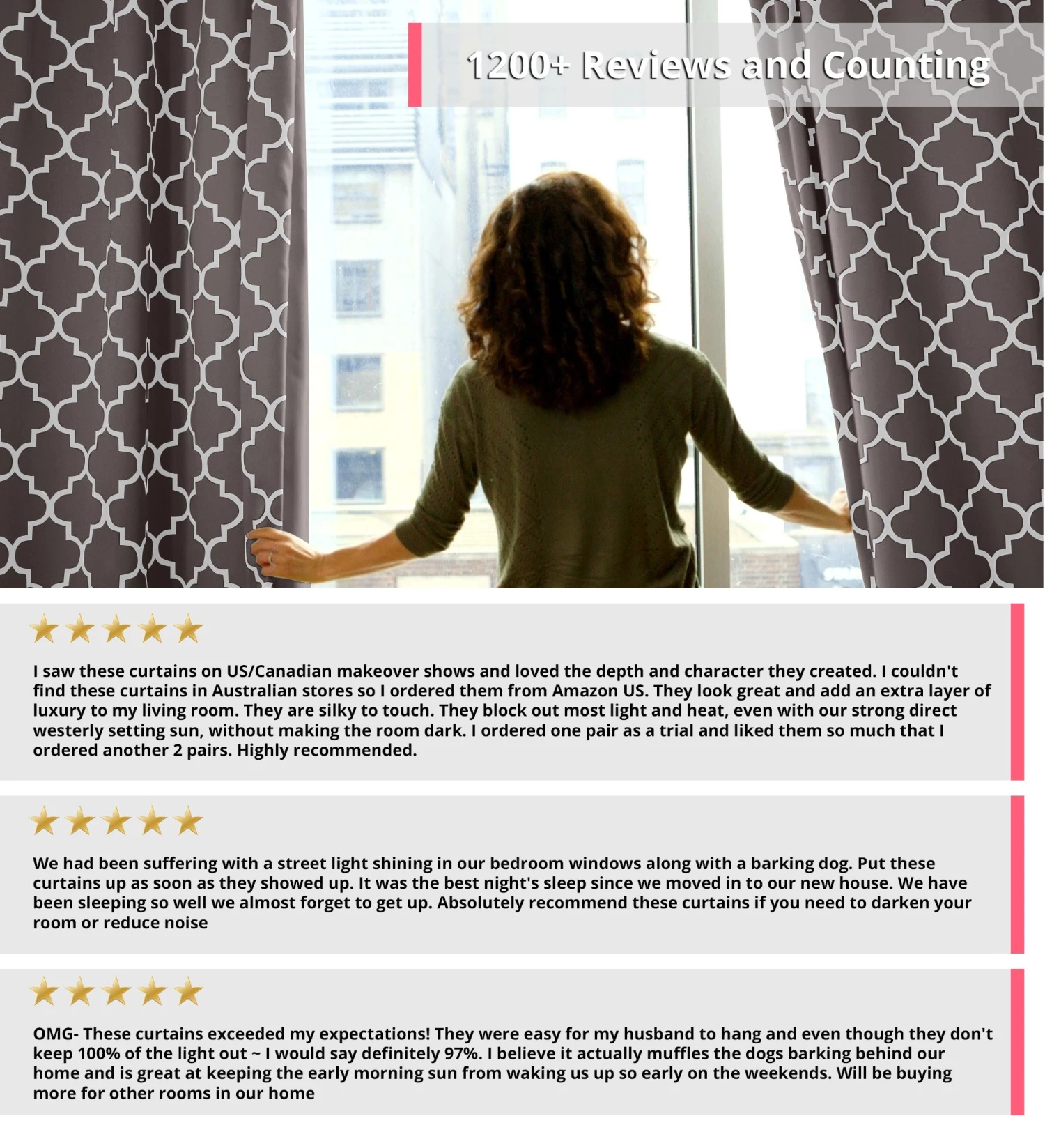 HLC.ME Lattice Print Blackout Grommet Curtain Panels – Grey – Set Of 2