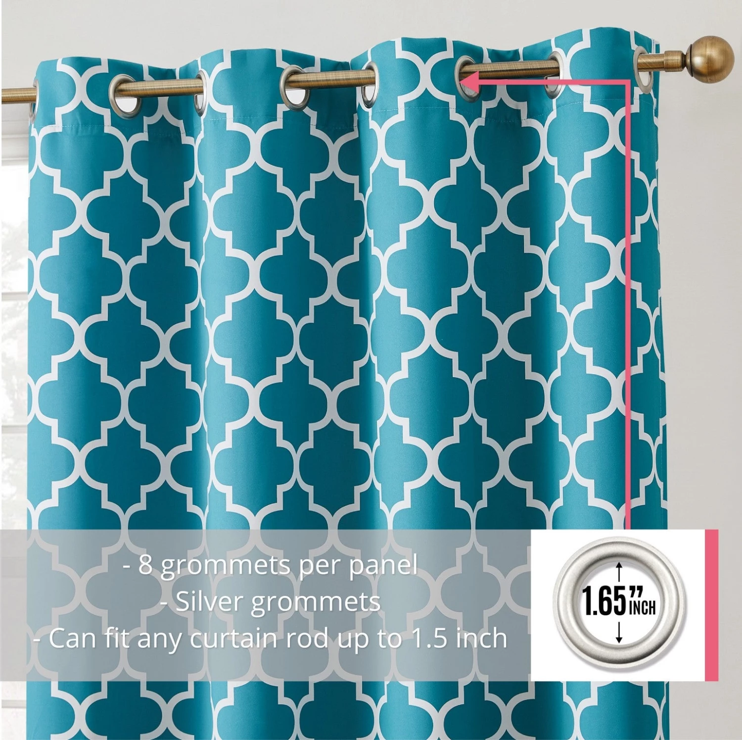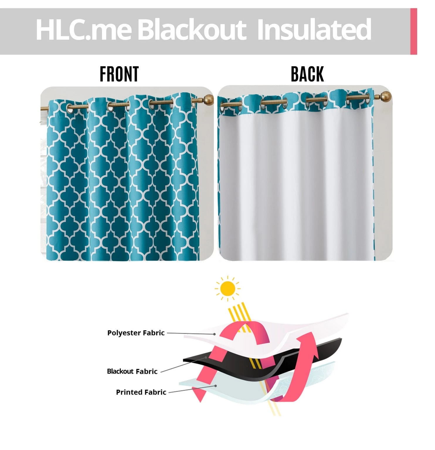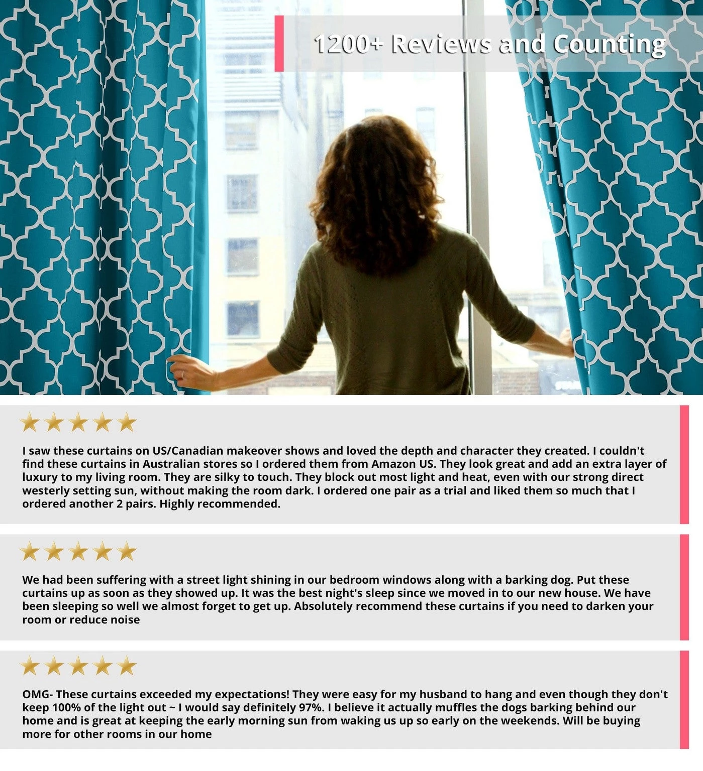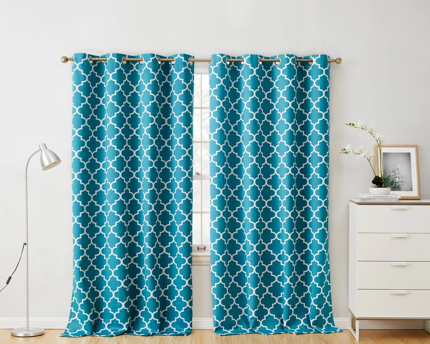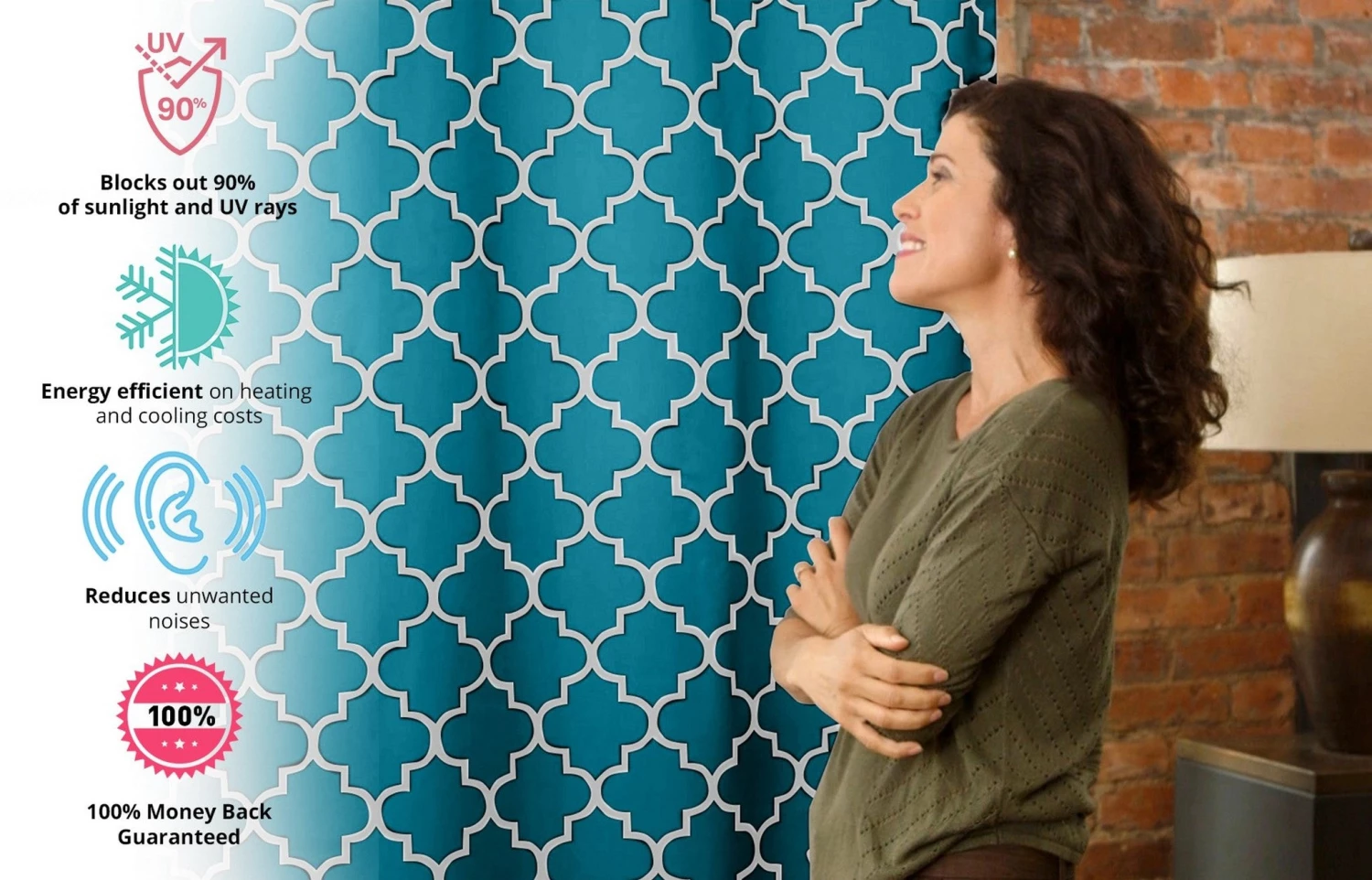 Benefits of blackout curtains: Energy efficient:They can decrease the amount of money spent on heating and air conditioning because of the curtain’s ability to reduce the amount of heat lost in cooler months and reflect heat in the summer. Sunlight:These blackout curtains are made of tightly woven, dense fabric inter sewn into a triple weave technology to reduce unwanted sunlight. These curtains will stop light from passing through thanks to special treatments and extra tight woven fabrics to help you control the light levels in your room. Creative Design:A moroccan geometric pattern offers a pleasing accent for any window. A lattice pattern interwoven to complete a chic and versatile look to compliment any room. Privacy: If you’ve ever been kept awake by irritating little noises from the street below that pull you back from the edge of blissful sleep, you’ll appreciate the noise reduction abilities of our blackout drapes. The thick blackout fabric of our readymade blackout curtains helps to dampen noises, contributing further to the peaceful sanctuary you need when you are drifting off to sleep. MACHINE WASHABLE: Machine Wash Cold, delicate cycle with mild detergent. Do not bleach. Tumble Dry Low. Cool iron if needed.