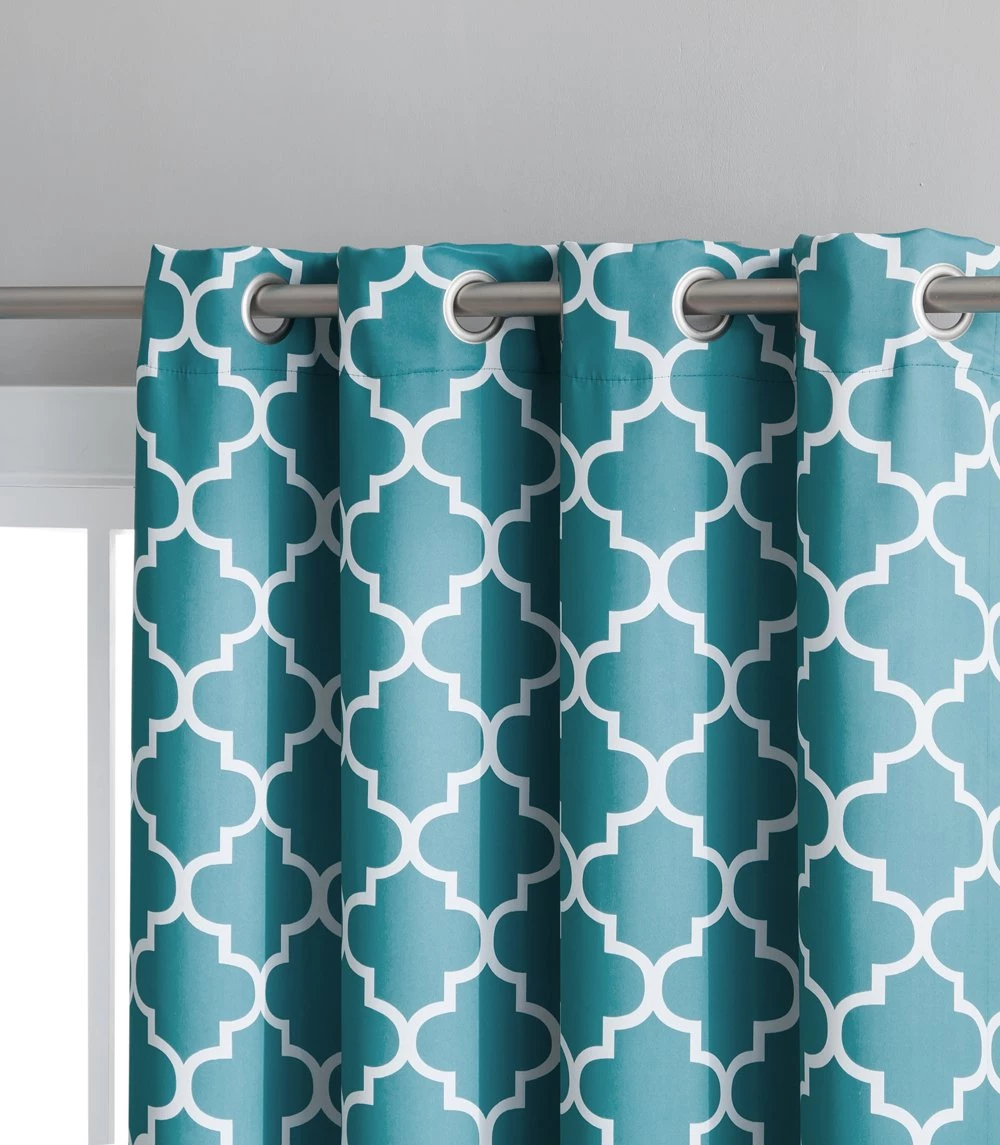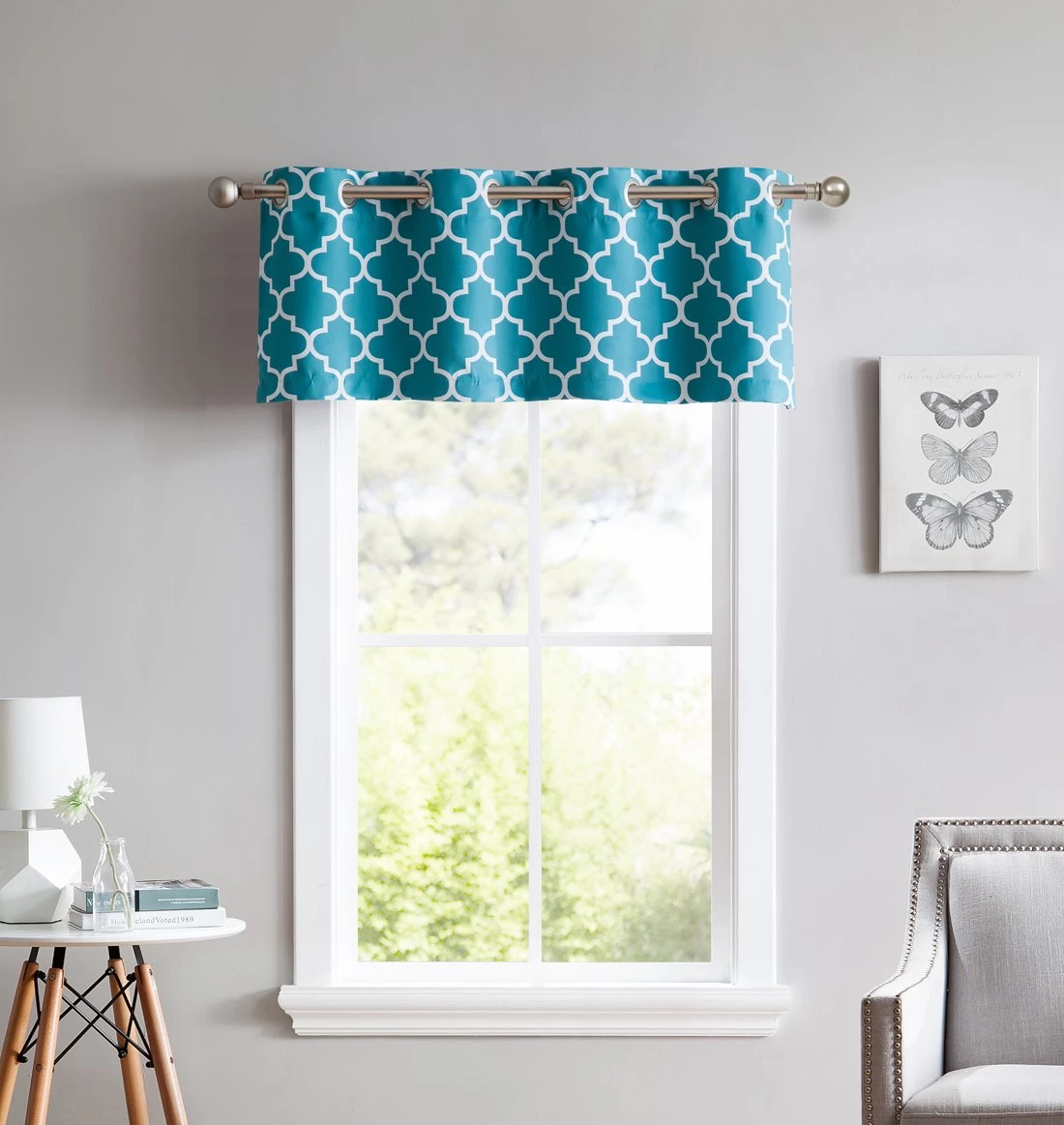 HLC.ME Lattice Print Blackout Grommet Valance – Teal Blue