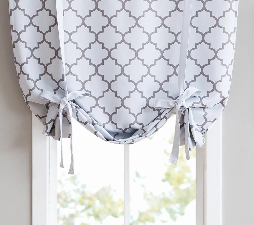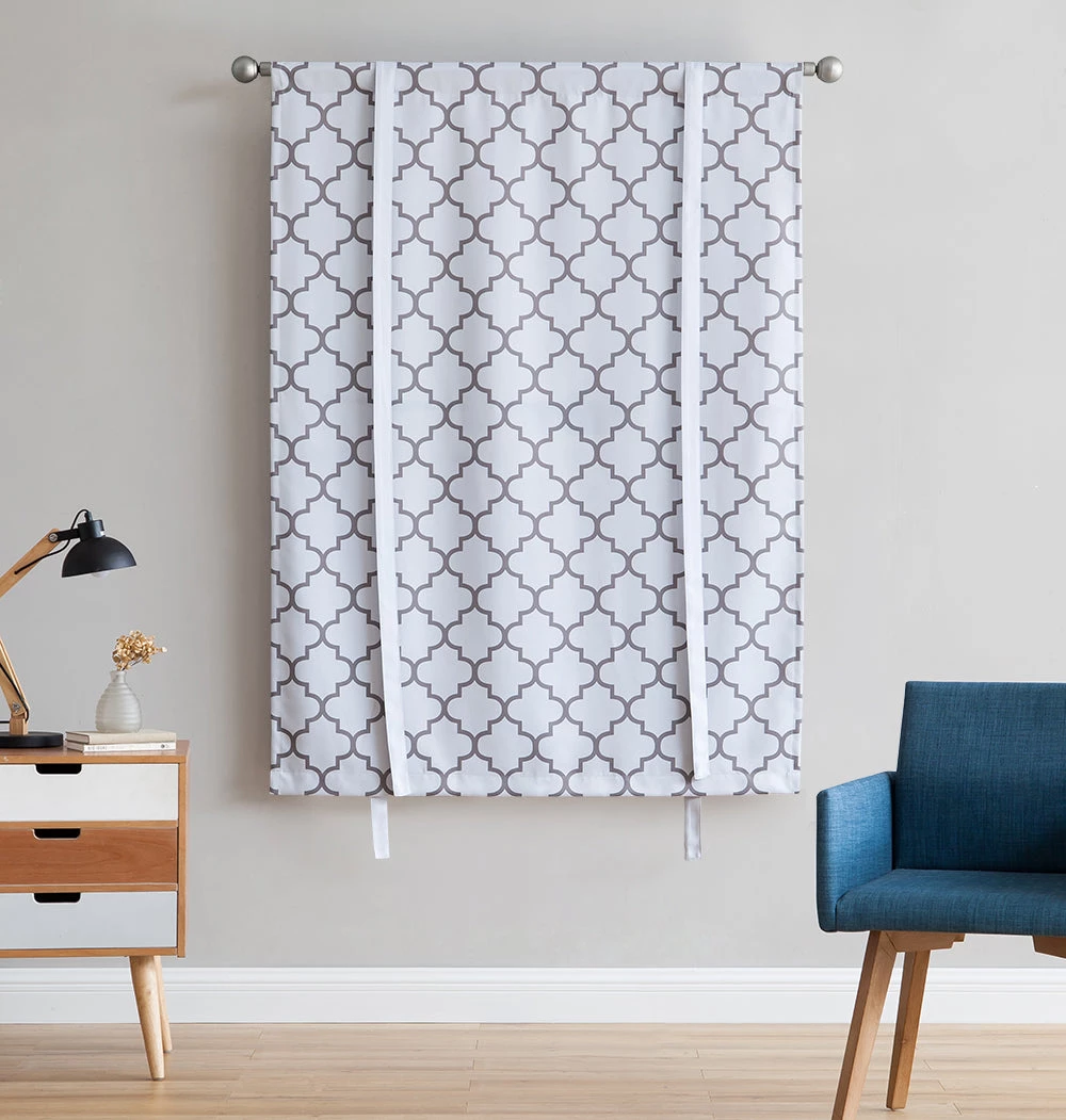 HLC.ME Lattice Print Blackout Tie Up Balloon Shade Valance – Platinum White & Grey