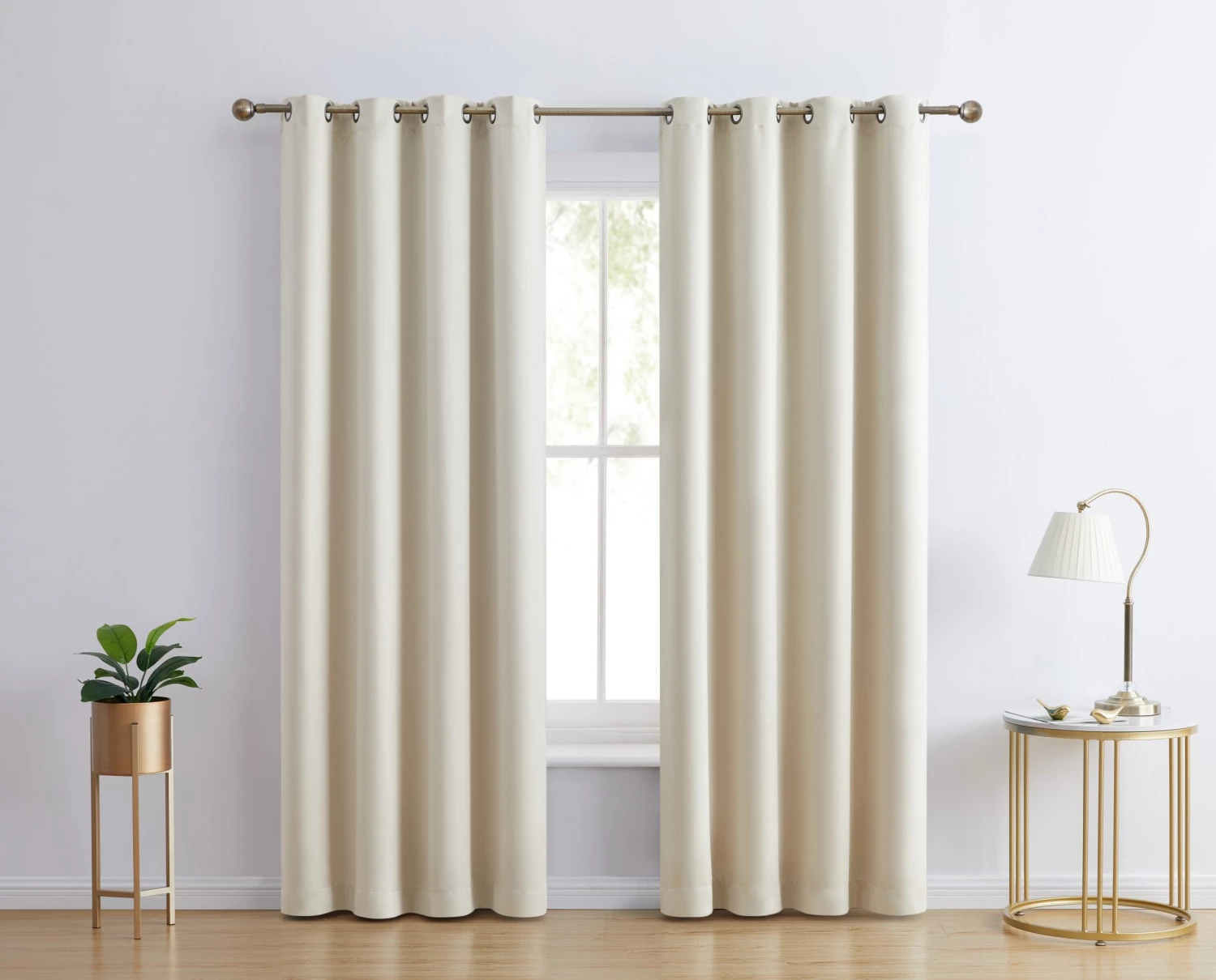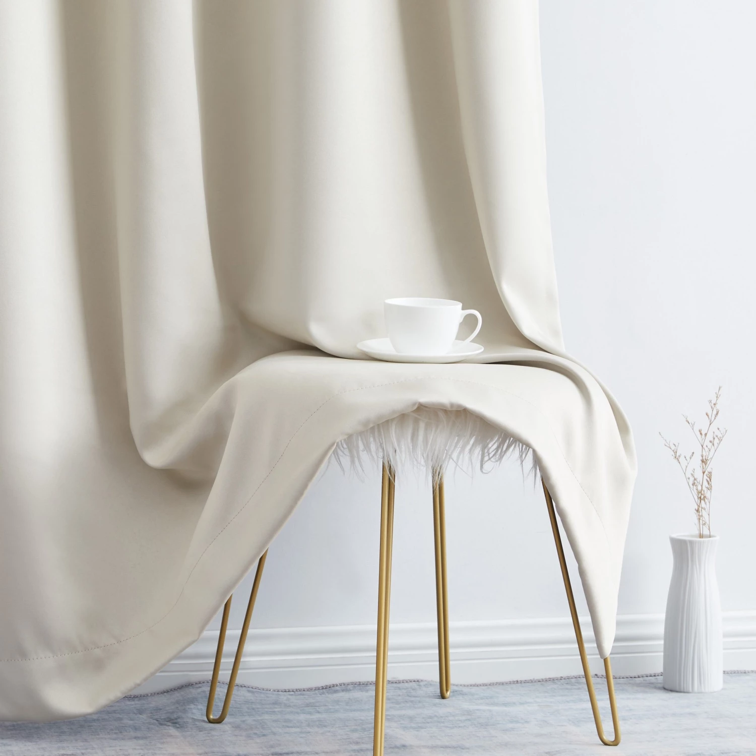 HLC.ME Laurance 100% Blackout Grommet Curtain Panels – Parchment Beige – Set Of 2 Blackout Curtains