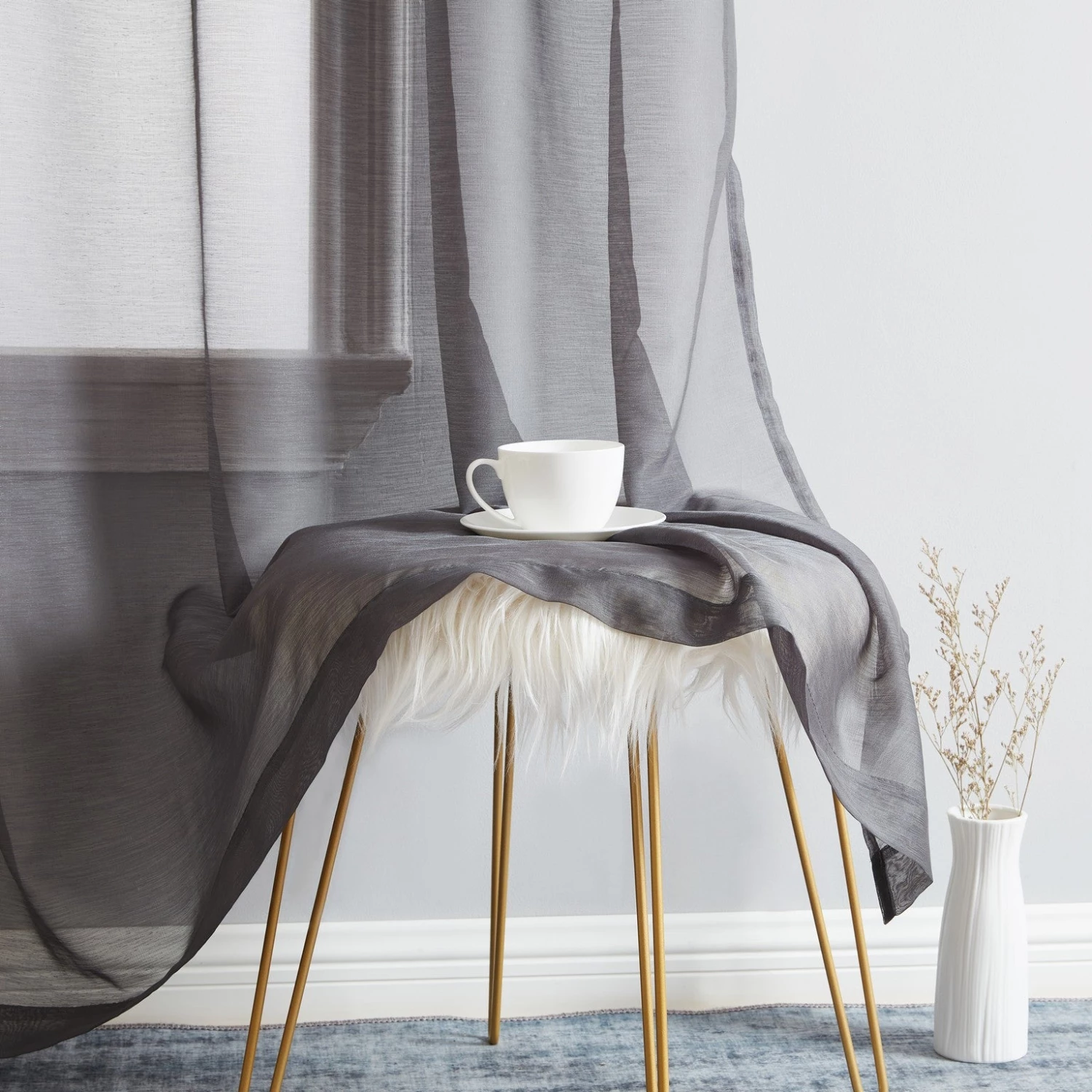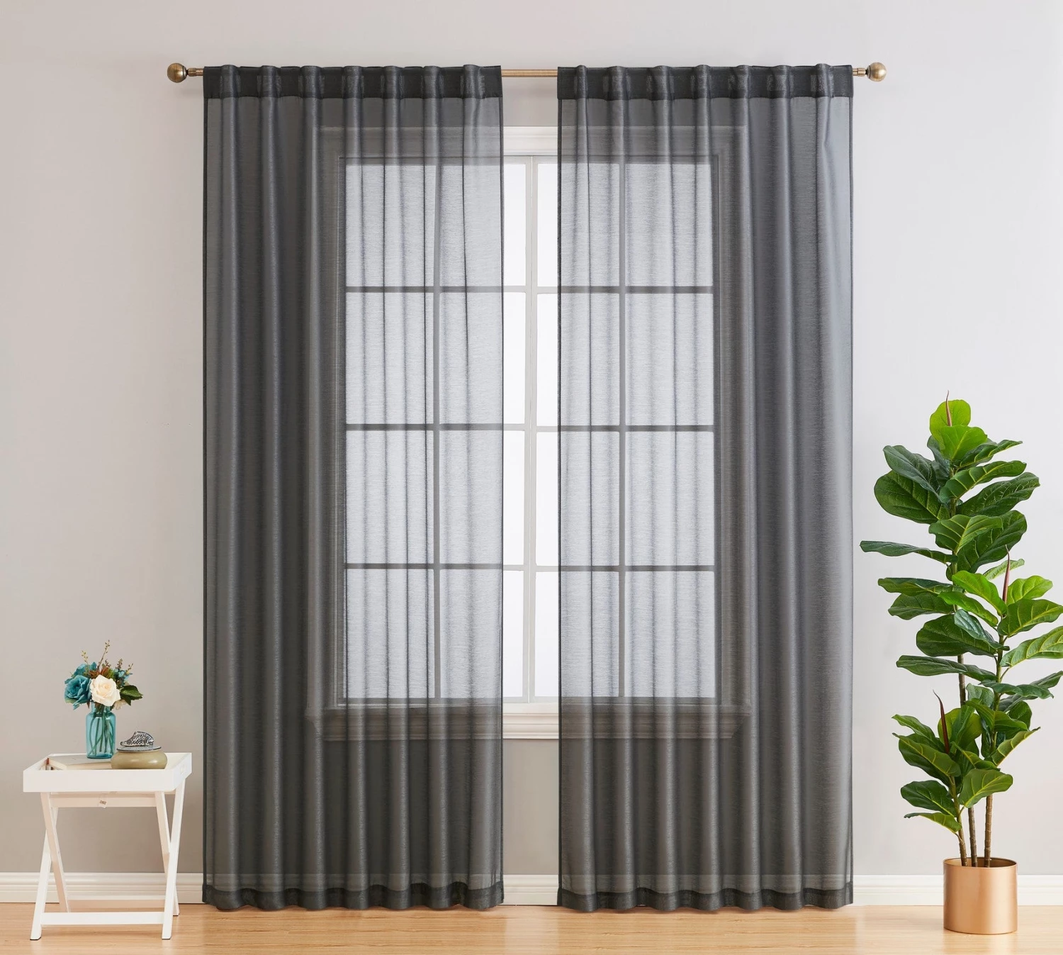 HLC.ME Lauren Semi Sheer Back Tab Rod Pocket Panels – Charcoal Grey – Set Of 2