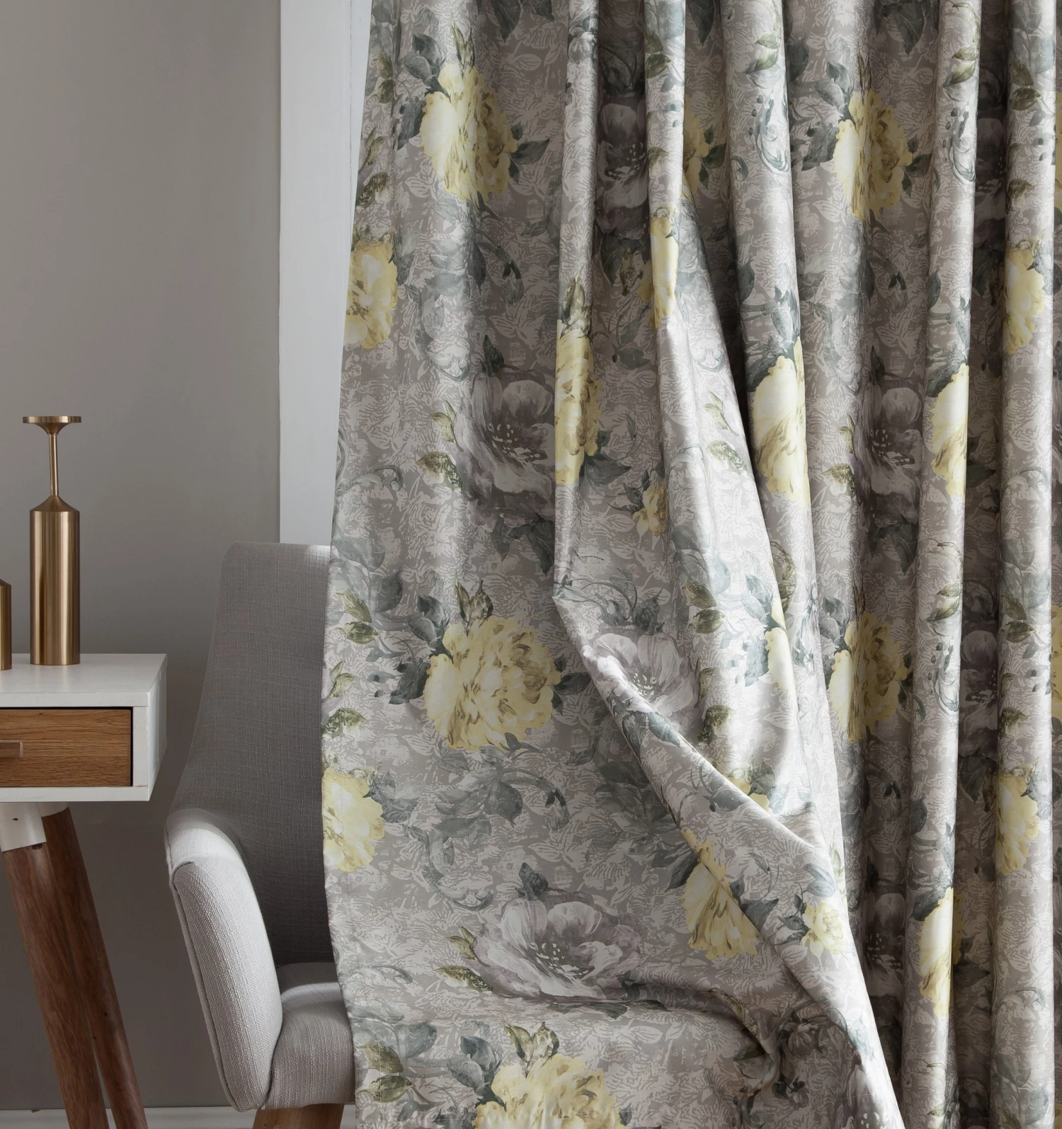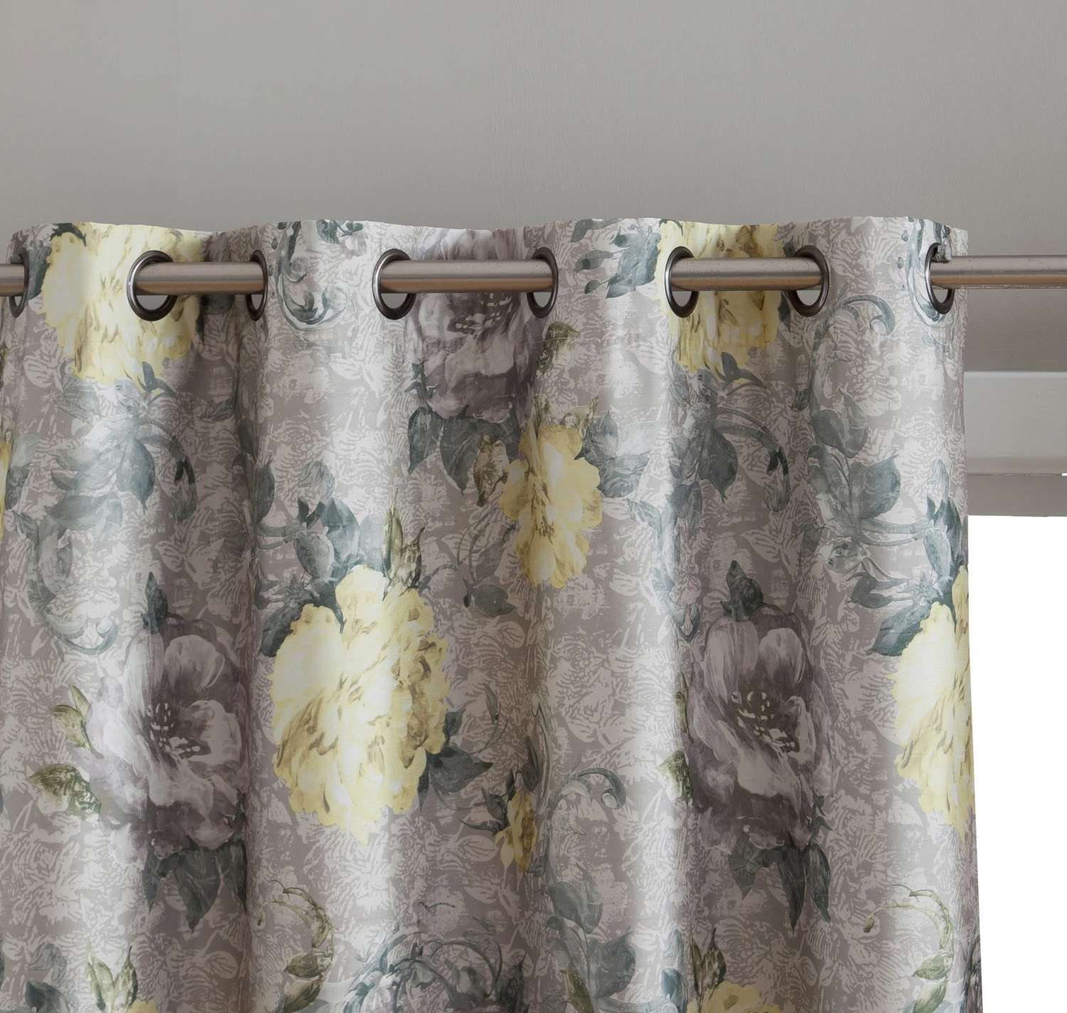 HLC.ME Layla Floral 100% Blackout Grommet Curtain Panels – Yellow – Set Of 2
