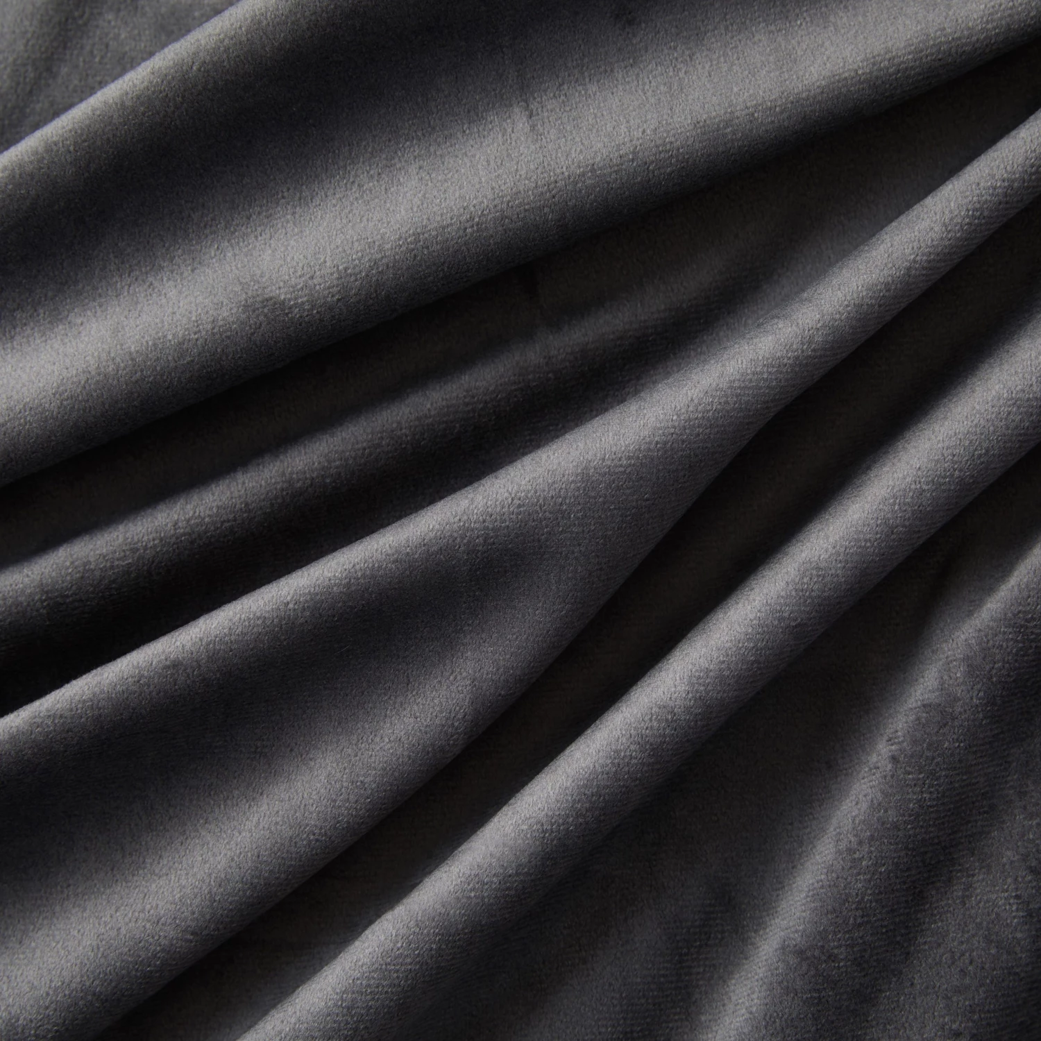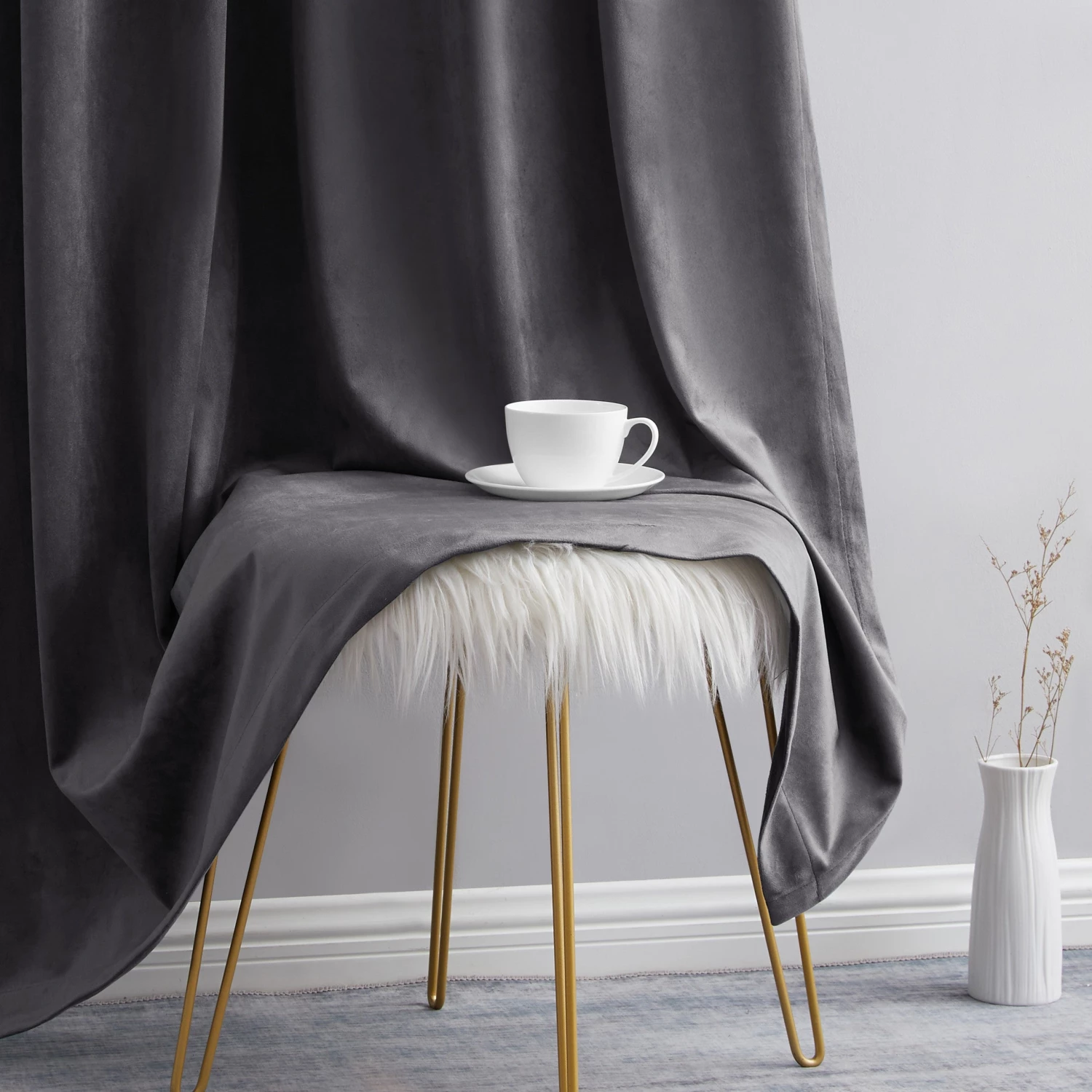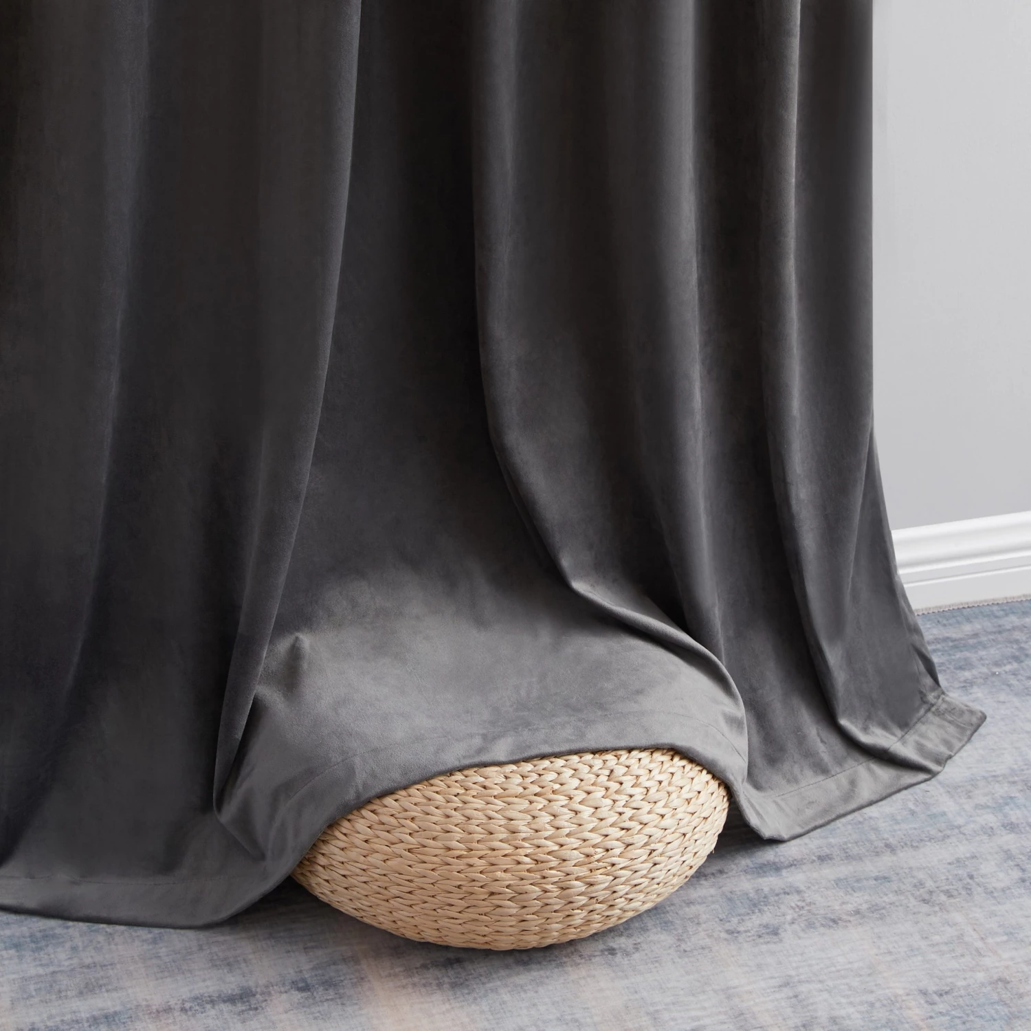 HLC.ME Lopez Velvet Back Tab Rod Pocket Curtain Panels – Charcoal Grey – Set Of 2