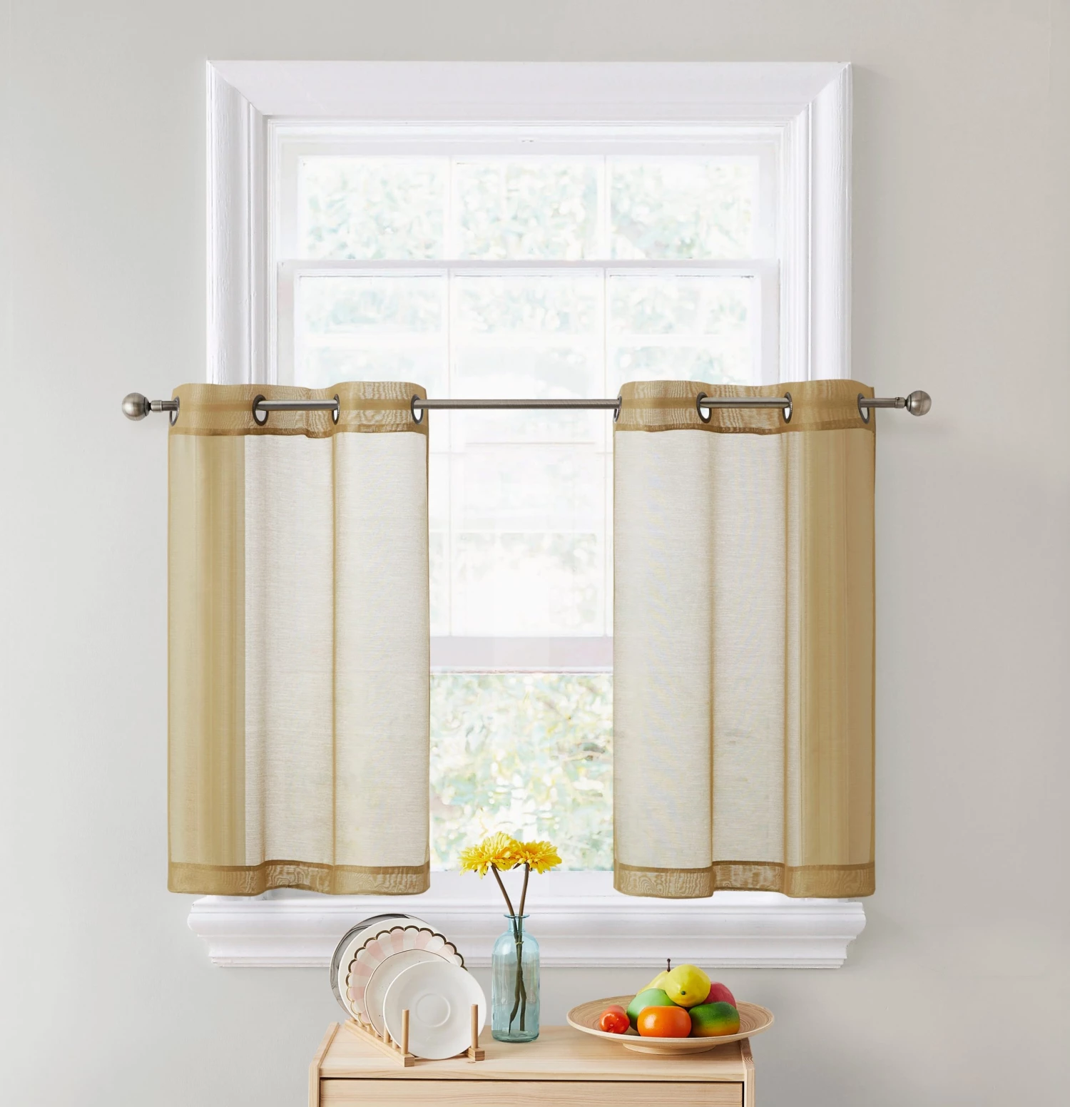 HLC.ME Lucento Sheer Grommet Cafe Tier Panels (Taupe) – Set Of 2 Faux Linen Curtains