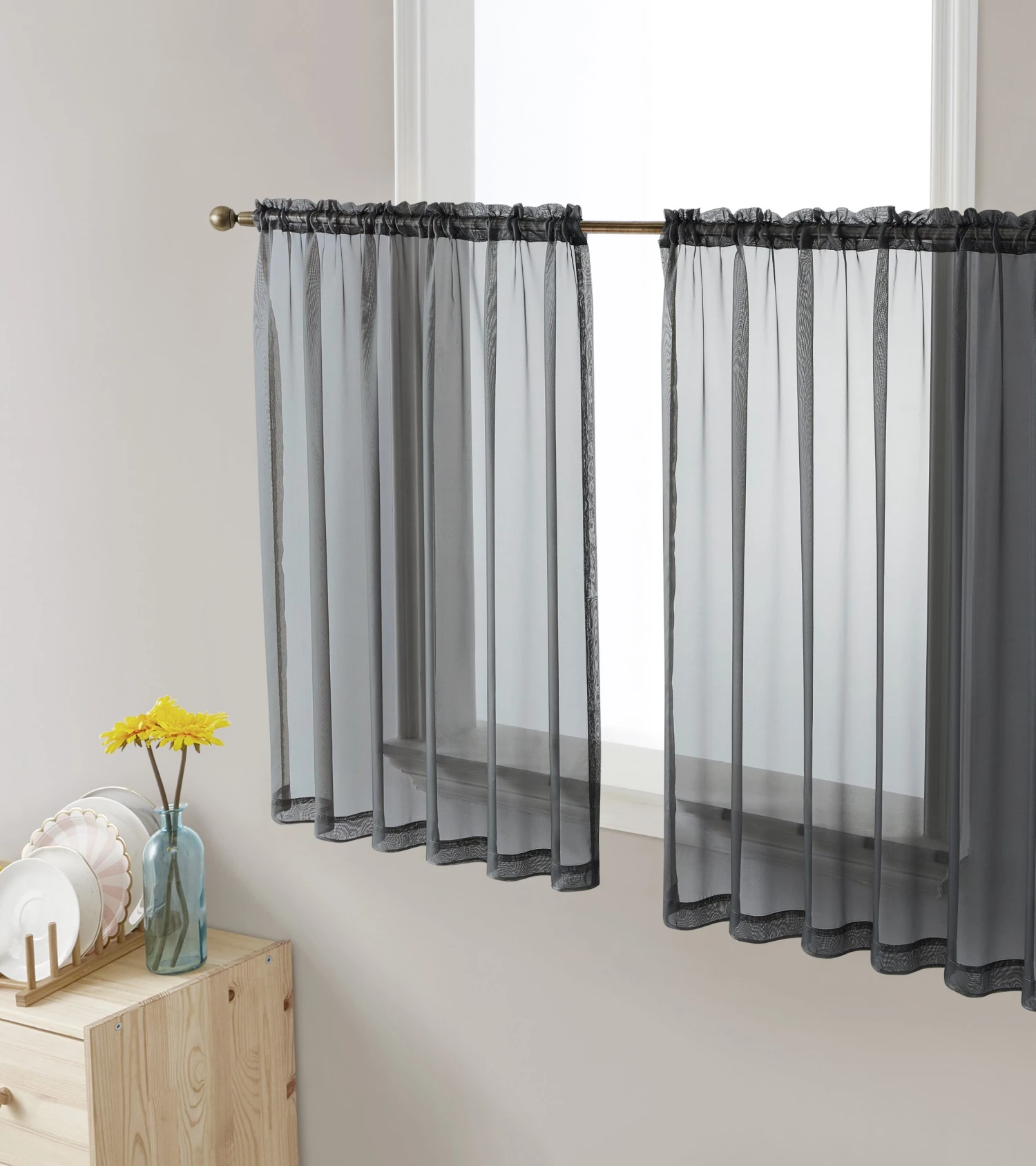 HLC.ME Lucento Sheer Rod Pocket Cafe Tier Panels – Charcoal Grey – Set Of 2 Faux Linen Curtains