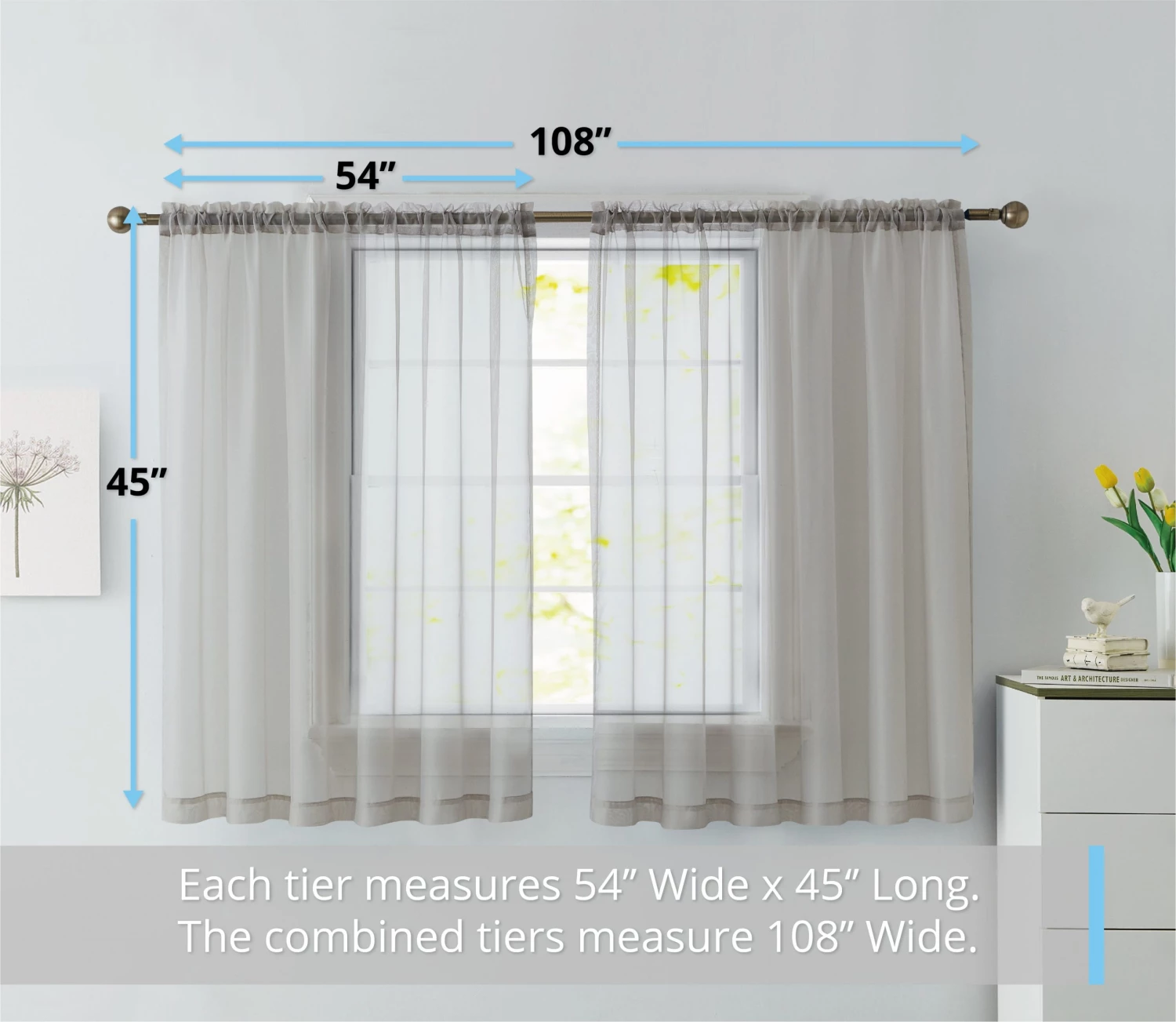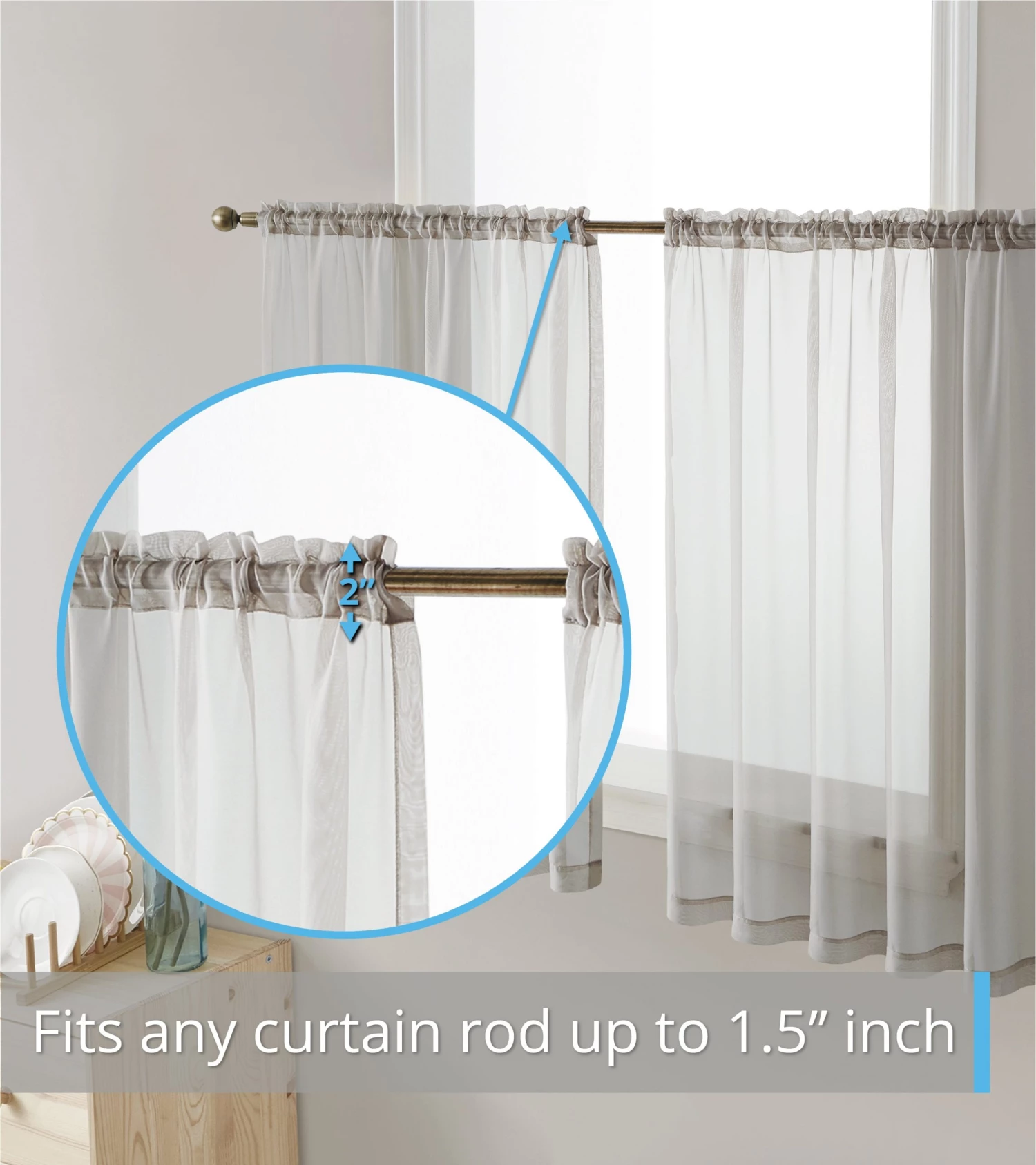 HLC.ME Lucento Sheer Rod Pocket Cafe Tier Panels – Silver – Set Of 2 Faux Linen Curtains