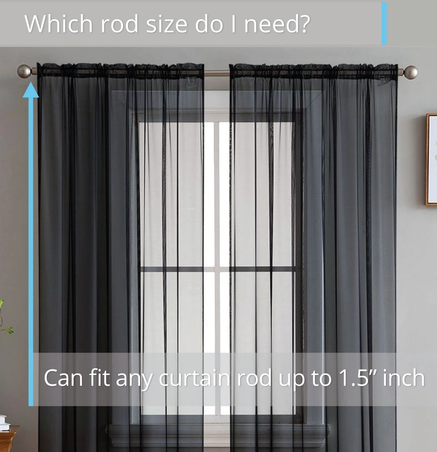 HLC.ME Lucento Sheer Rod Pocket Curtain Panels – Black – Set Of 2 Sheer Curtains