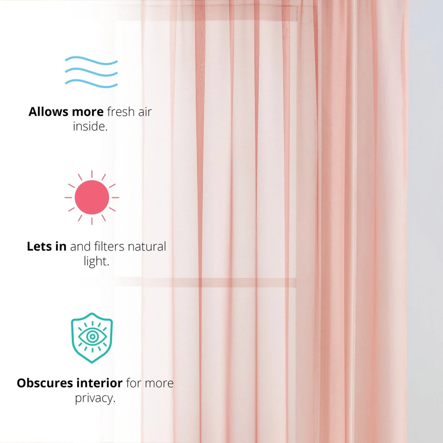 HLC.ME Lucento Sheer Rod Pocket Curtain Panels – Blush Pink – Set Of 2 Sheer Curtains
