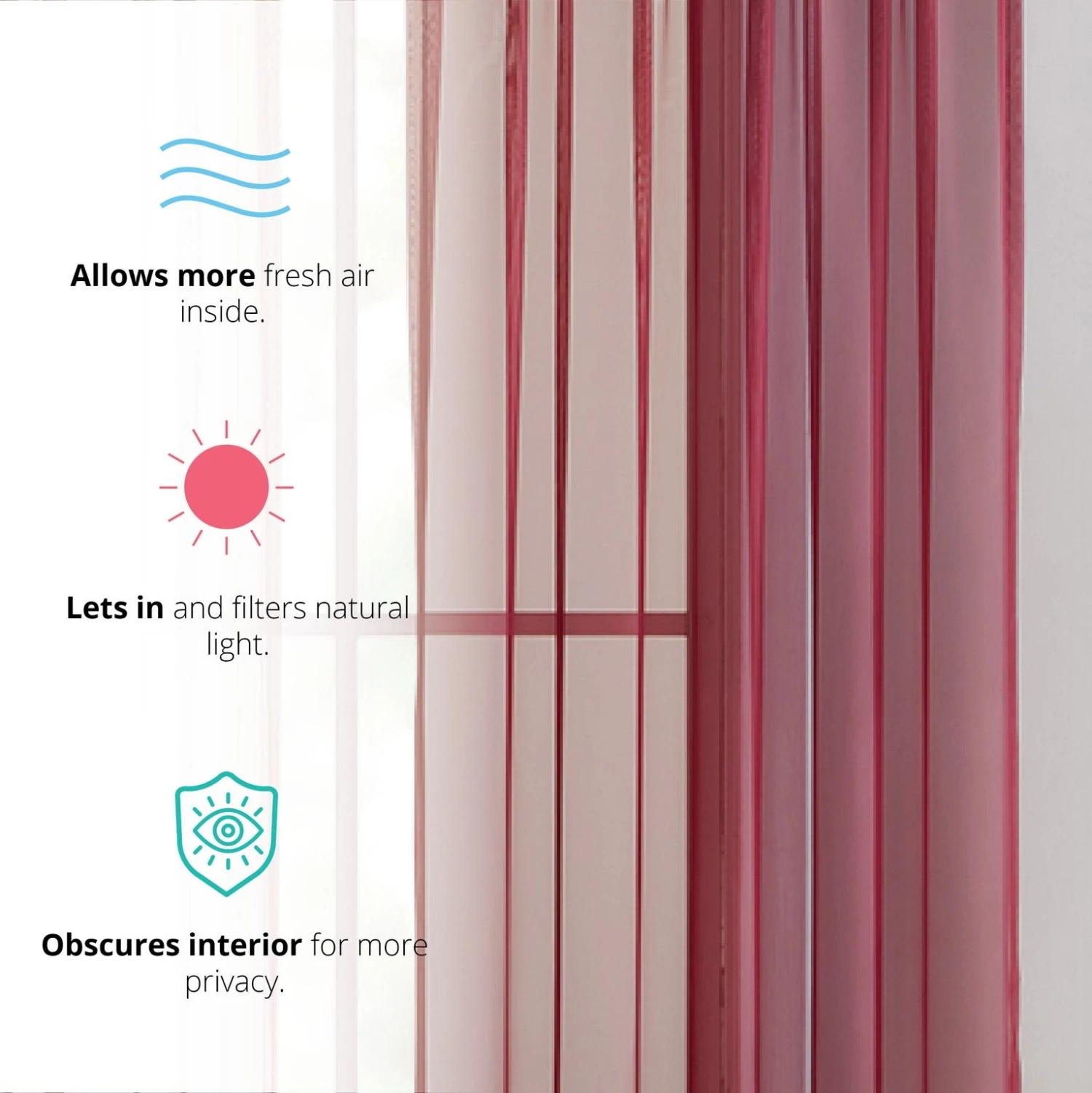 HLC.ME Lucento Sheer Rod Pocket Curtain Panels – Burgundy – Set Of 2 Sheer Curtains
