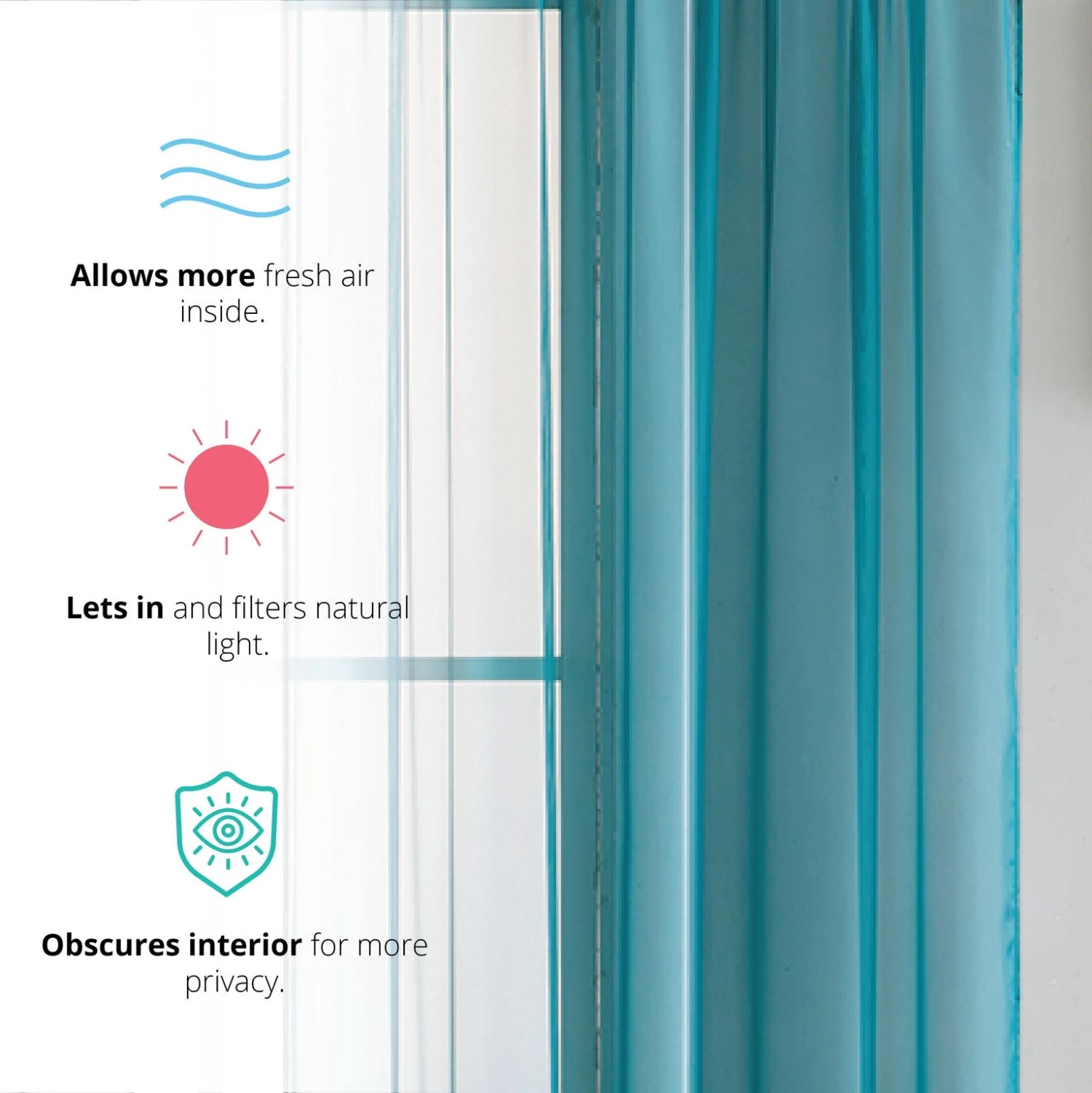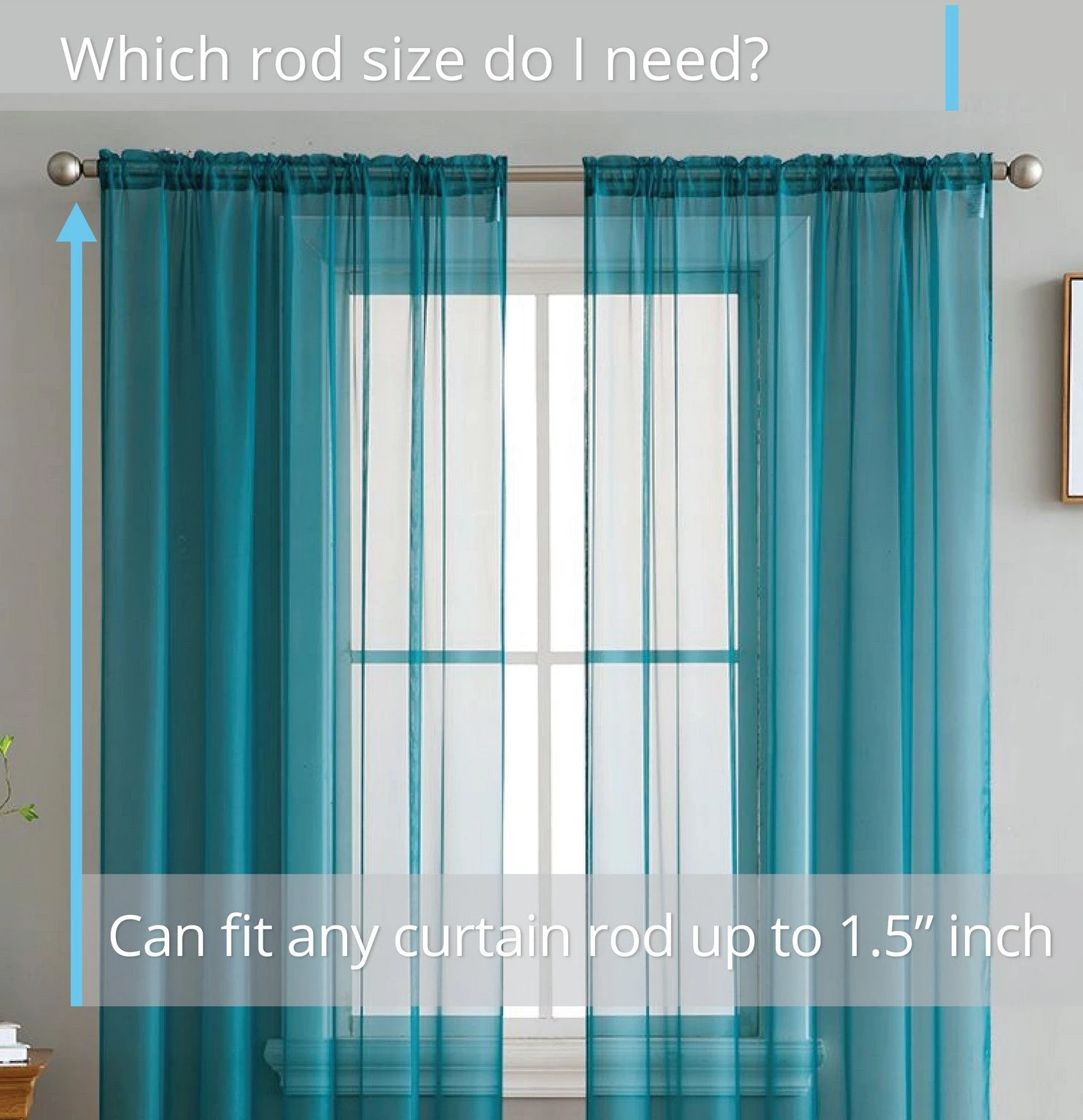 Sheer voile curtains give a light, romantic and airy look to a room by allowing sunlight to pass through the curtains. The fabric of voile curtains makes a unique window treatment that allows you to see outside but still allowing for privacy. For most home owners this is a great feature of sheer voile grommet curtains. Light weight sheer voile curtains are a very effective decorating tool. Because of the lightness to the fabric allow light to enter the room while still providing privacy. They can be used for in many other ways as well. One of the great qualities to sheer voile curtains is they they come in a wide variety of colors and are generally inexpensive. This allows your to use them in every room of the house without breaking your budget. Sheer curtains are very easy to install and make them a great addition to any room as you can create a designer look with little effort. Each curtain panel can fit a curtain rod up to 1. 5 inch. Fiber Content: 100% Polyester. Package contains two (2) voile sheer window curtain panels. Care Instructions: Machine wash cold, Gentle Cycle. Use only non-chlorine. Bleach as needed. Tumble Dry Low. Iron on lowest setting as needed.