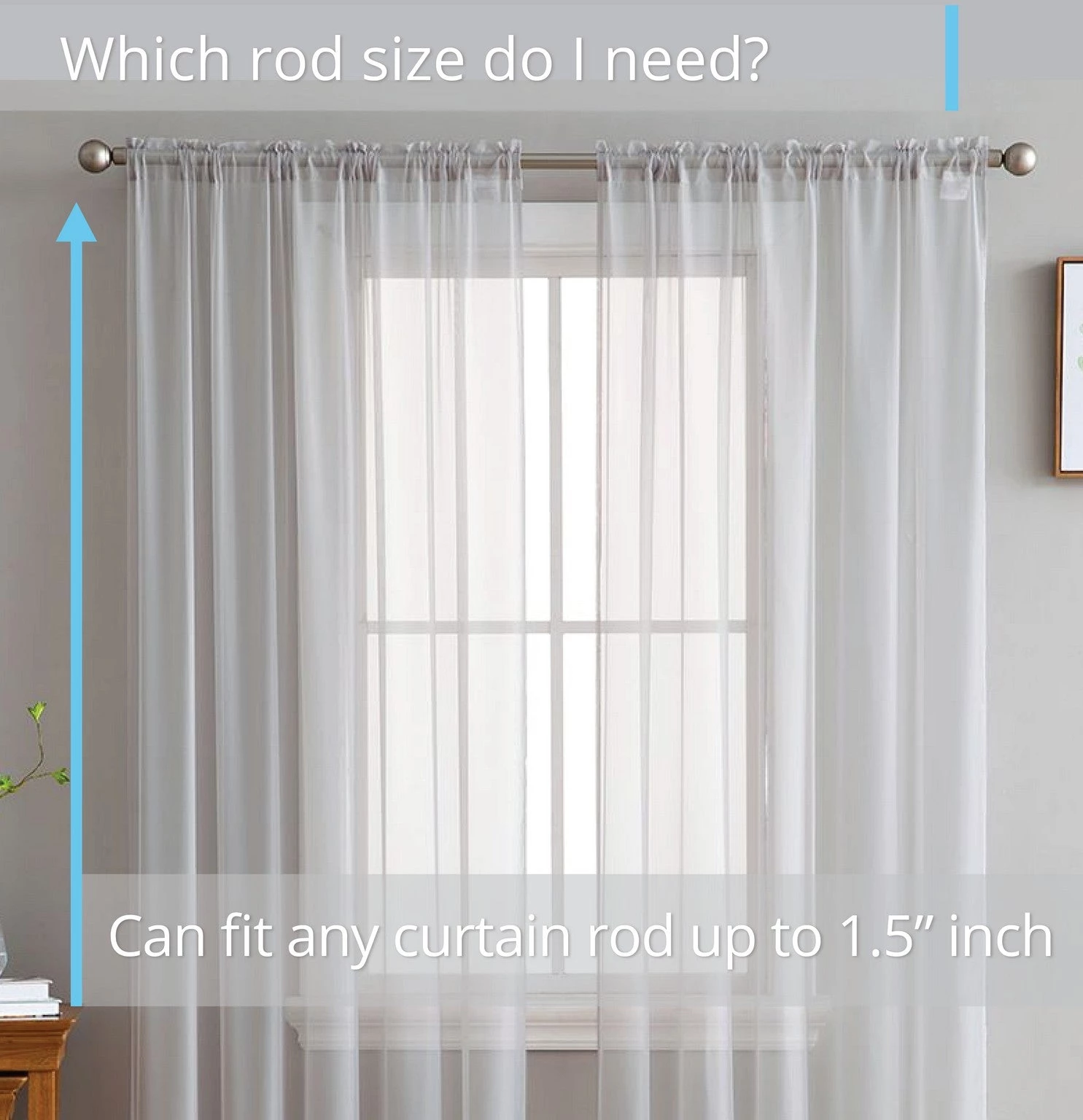 Sheer voile curtains give a light, romantic and airy look to a room by allowing sunlight to pass through the curtains. The fabric of voile curtains makes a unique window treatment that allows you to see outside but still allowing for privacy. For most home owners this is a great feature of sheer voile grommet curtains. Light weight sheer voile curtains are a very effective decorating tool. Because of the lightness to the fabric allow light to enter the room while still providing privacy. They can be used for in many other ways as well. One of the great qualities to sheer voile curtains is they they come in a wide variety of colors and are generally inexpensive. This allows your to use them in every room of the house without breaking your budget. Sheer curtains are very easy to install and make them a great addition to any room as you can create a designer look with little effort. Each curtain panel can fit a curtain rod up to 1. 5 inch. Fiber Content: 100% Polyester. Package contains two (2) voile sheer window curtain panels. Care Instructions: Machine wash cold, Gentle Cycle. Use only non-chlorine. Bleach as needed. Tumble Dry Low. Iron on lowest setting as needed.