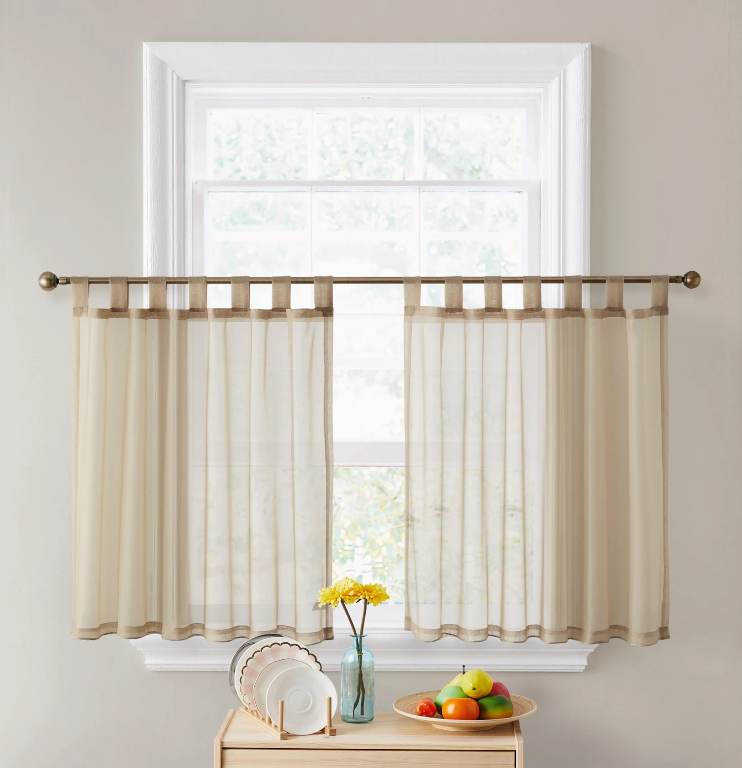 HLC.ME Lucento Sheer Tab Top Tiers – Antique Taupe – Set Of 2