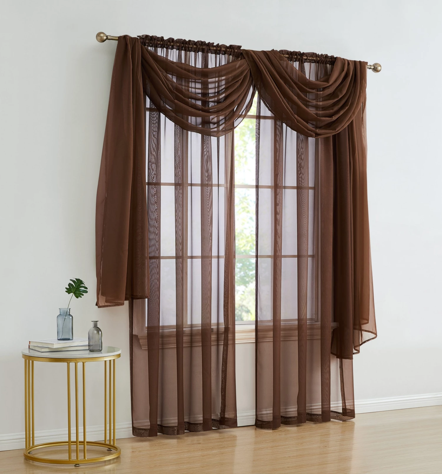 HLC.ME Lucento Sheer Window Scarf – Chocolate Brown Sheer Curtains