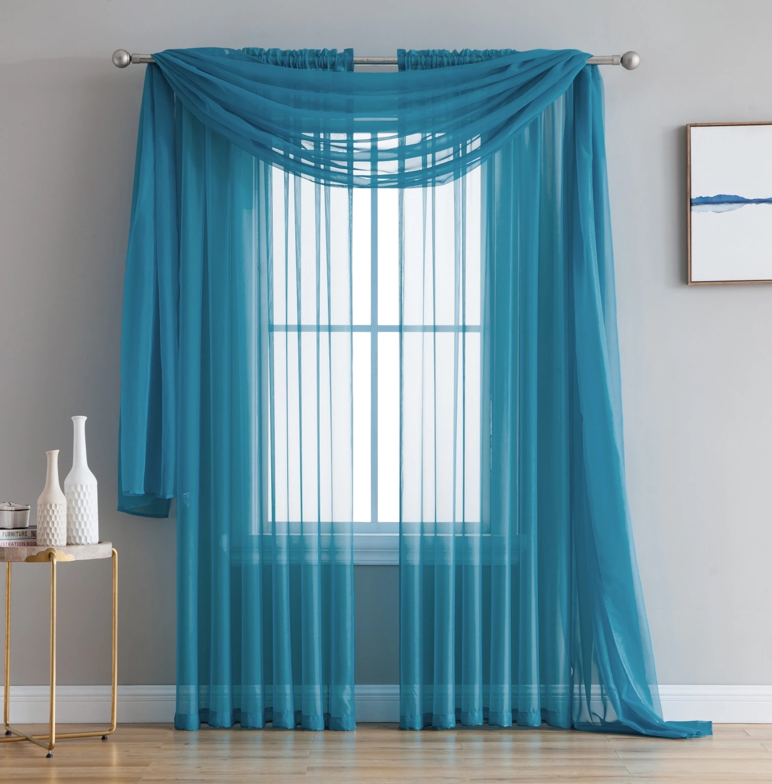 HLC.ME Lucento Sheer Window Scarf – Turquoise Sheer Curtains