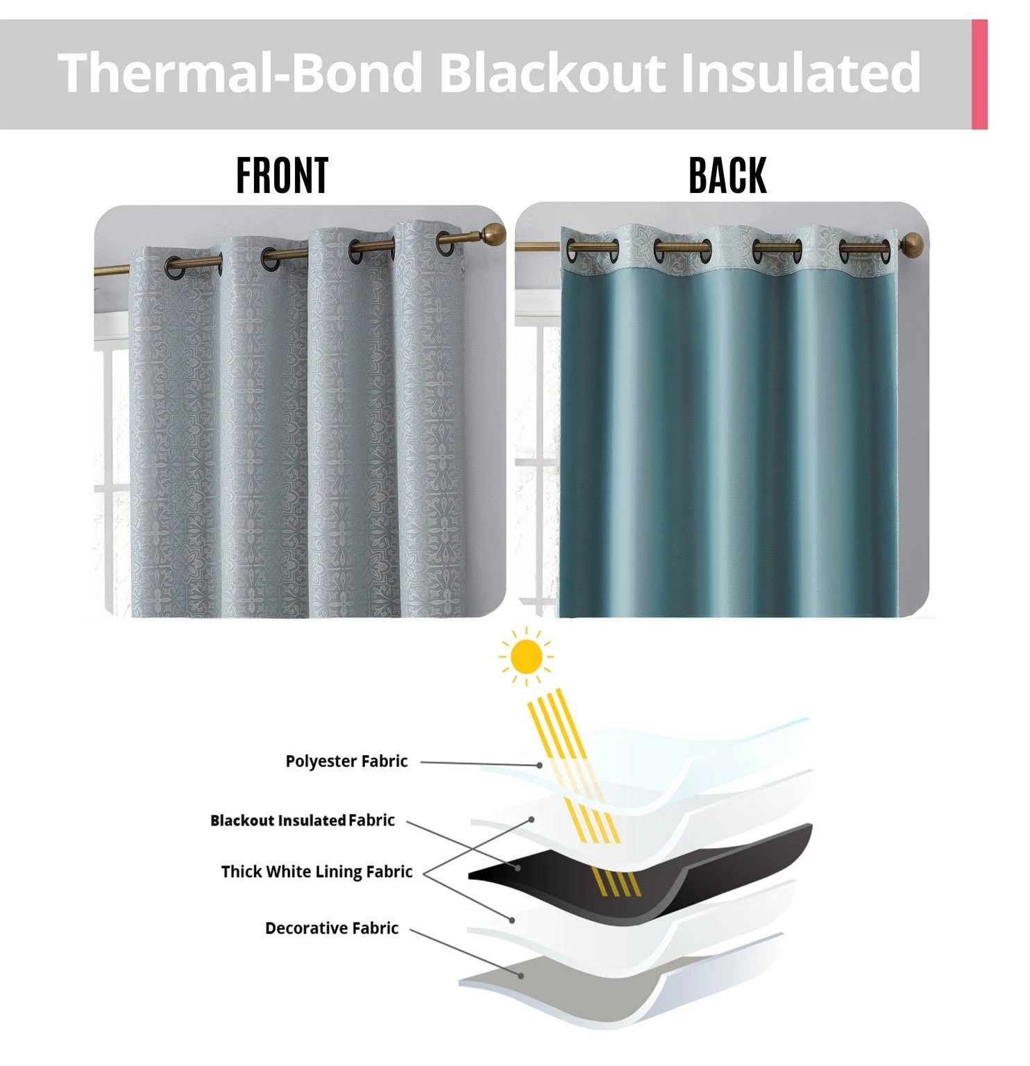 HLC.ME Mia Moroccan Tile 100% Complete Blackout Grommet Curtains – Seafoam Green – Set Of 2 Blackout Curtains