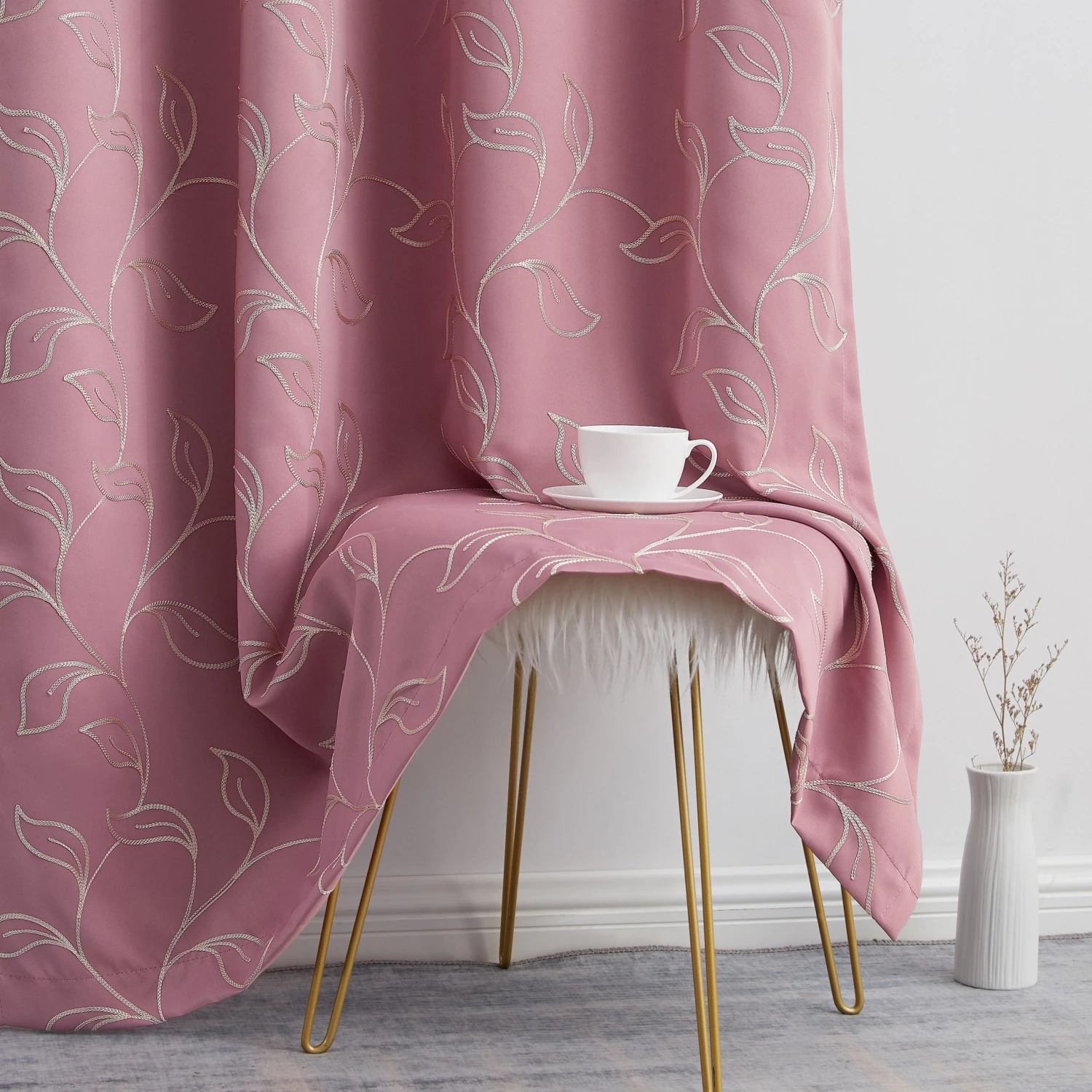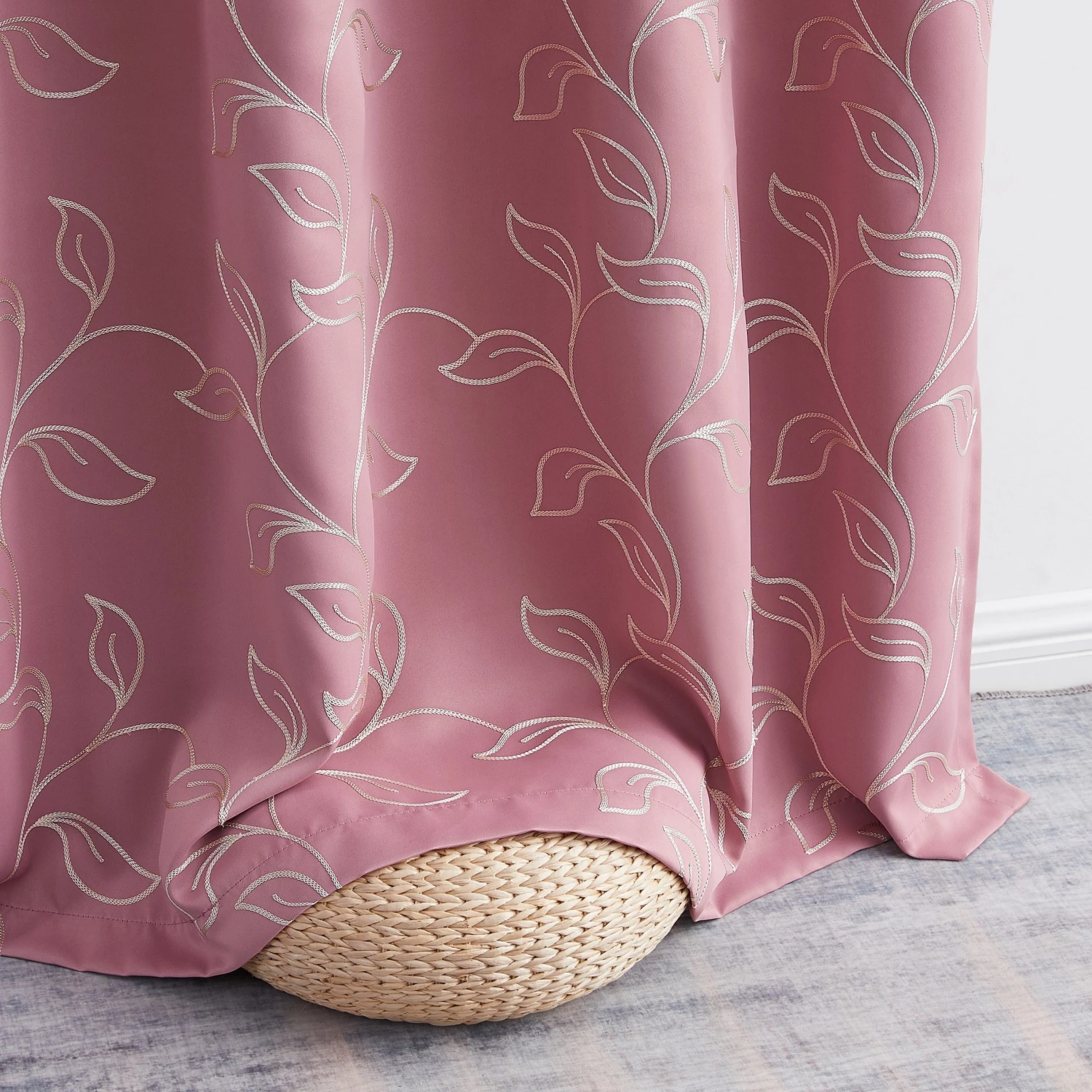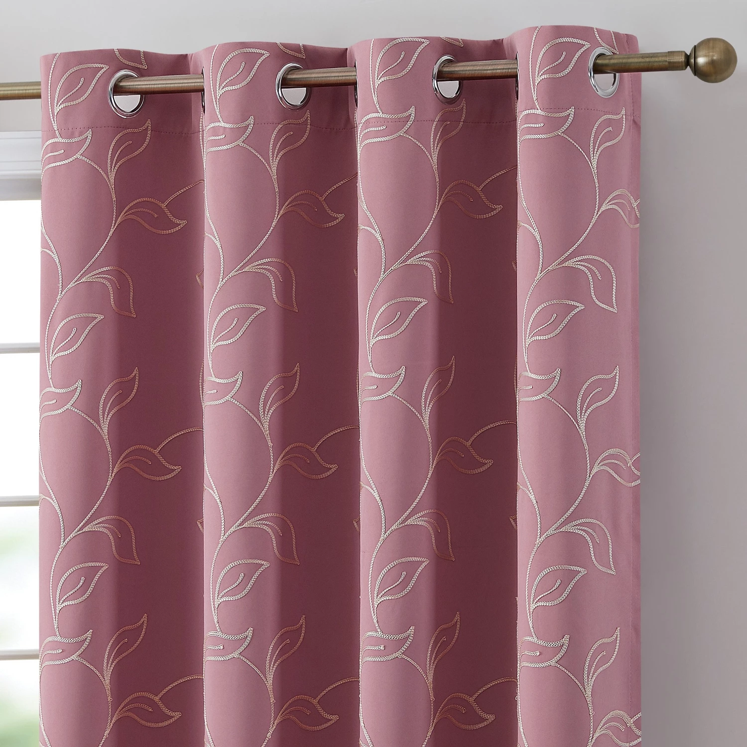 HLC.ME Onyx By Obscura Carol Floral Blackout Curtains – Blush – Set Of 2