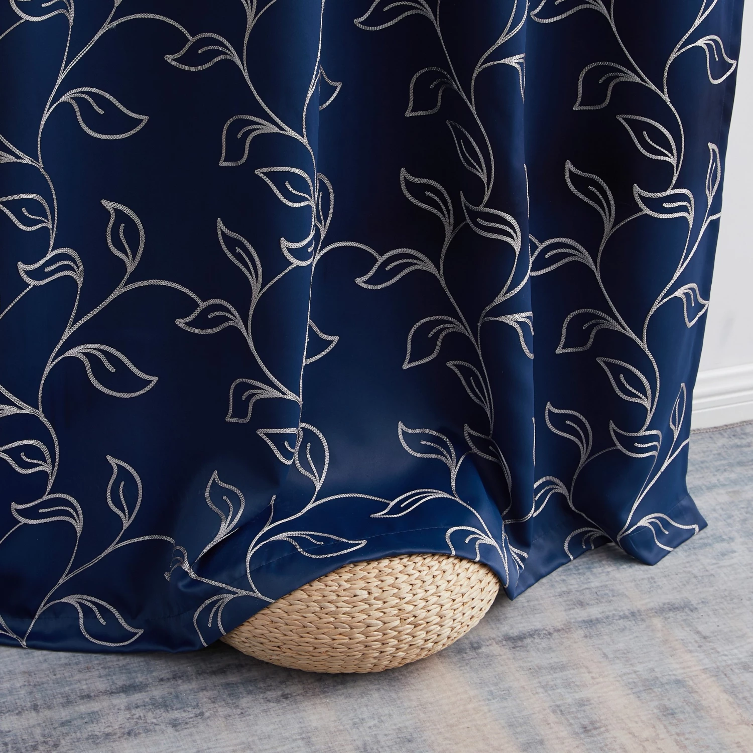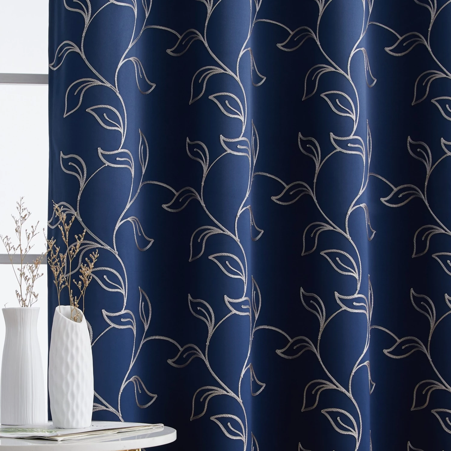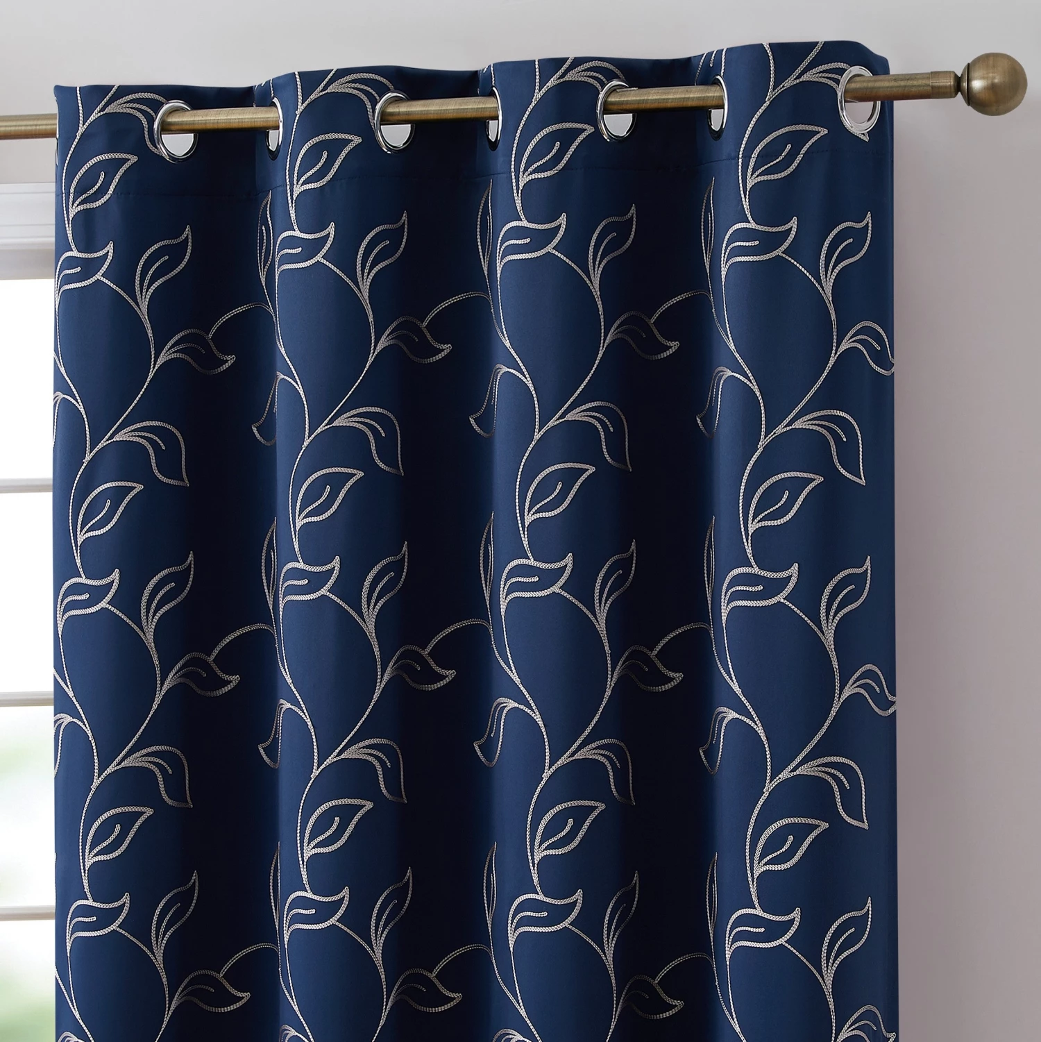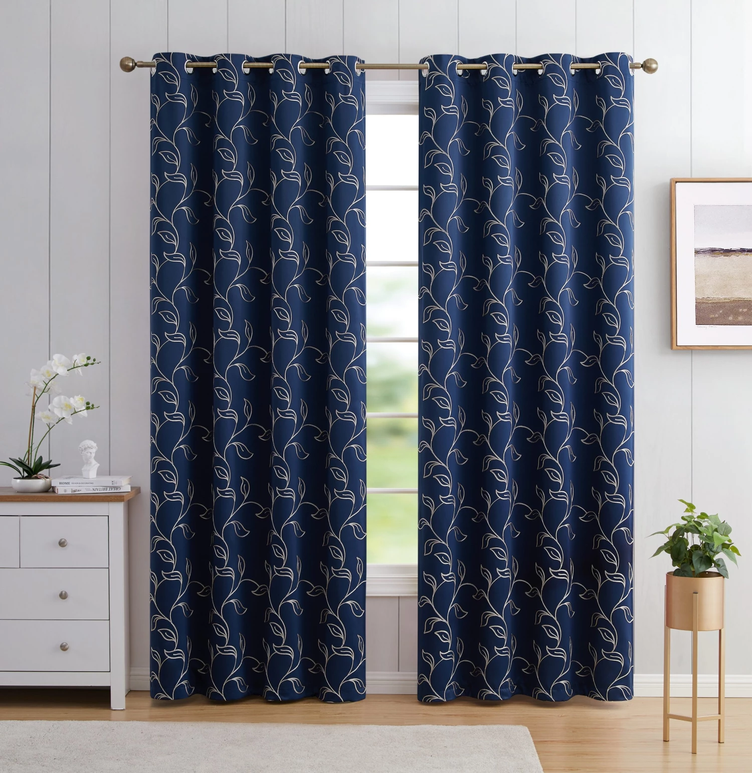 HLC.ME Onyx By Obscura Carol Floral Blackout Curtains – Navy – Set Of 2