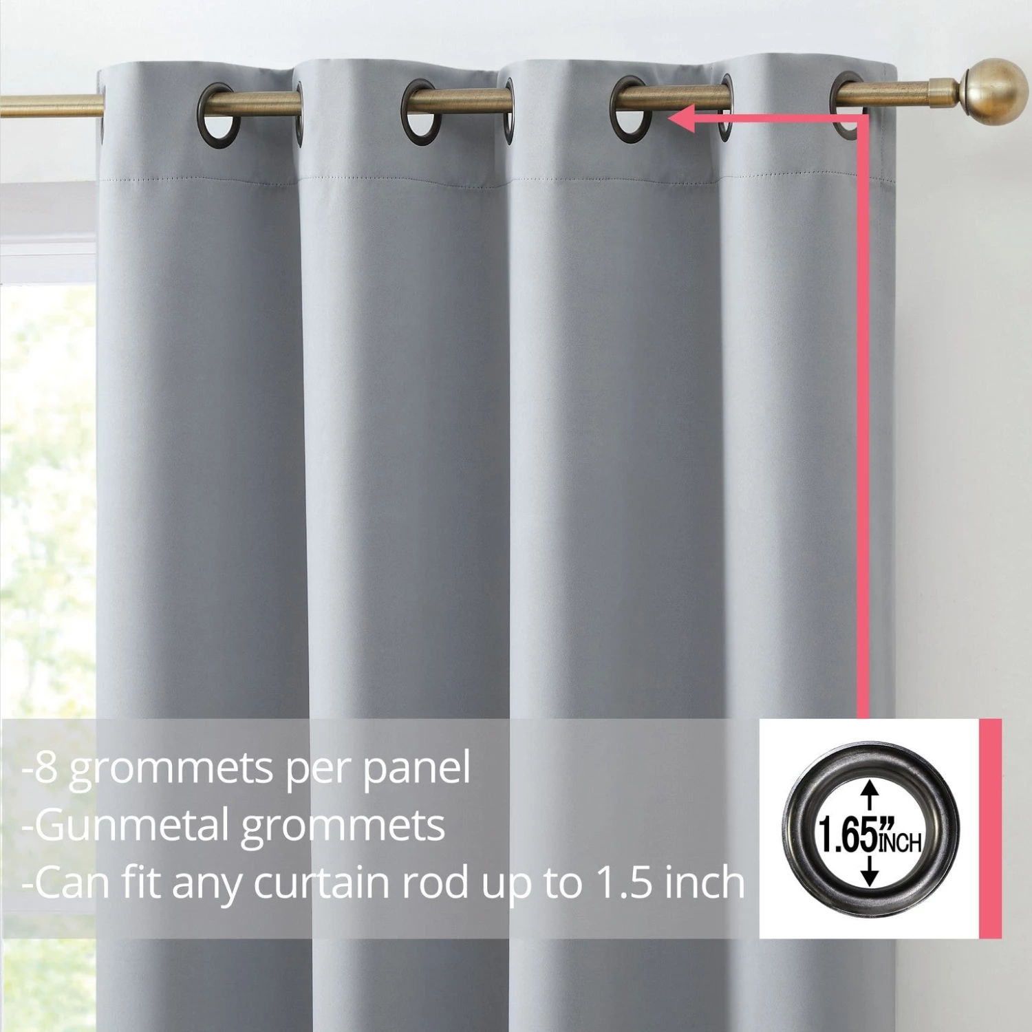 HLC.ME Oxford Blackout Grommet Curtain Panels (Light Grey) – Set Of 2