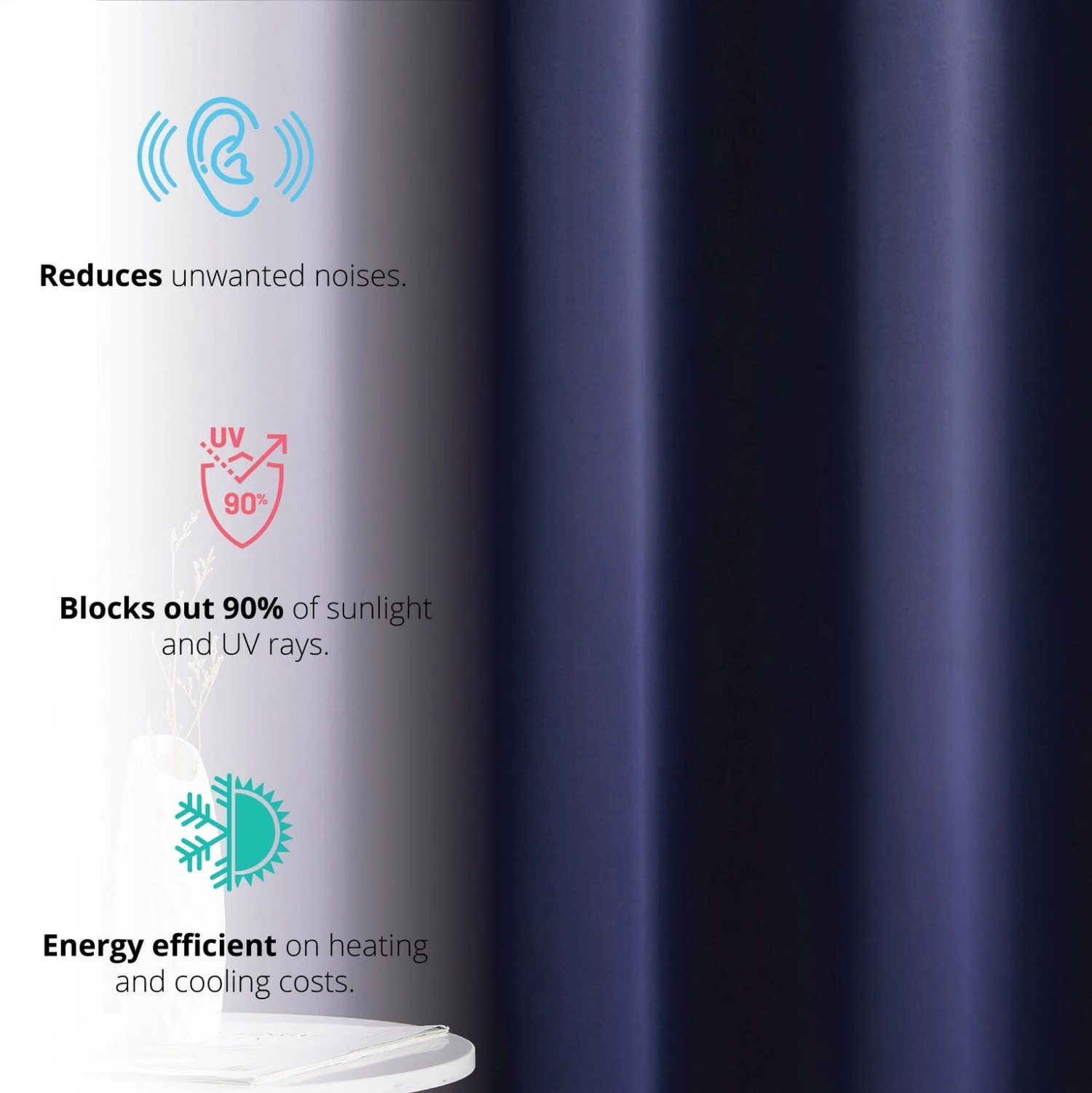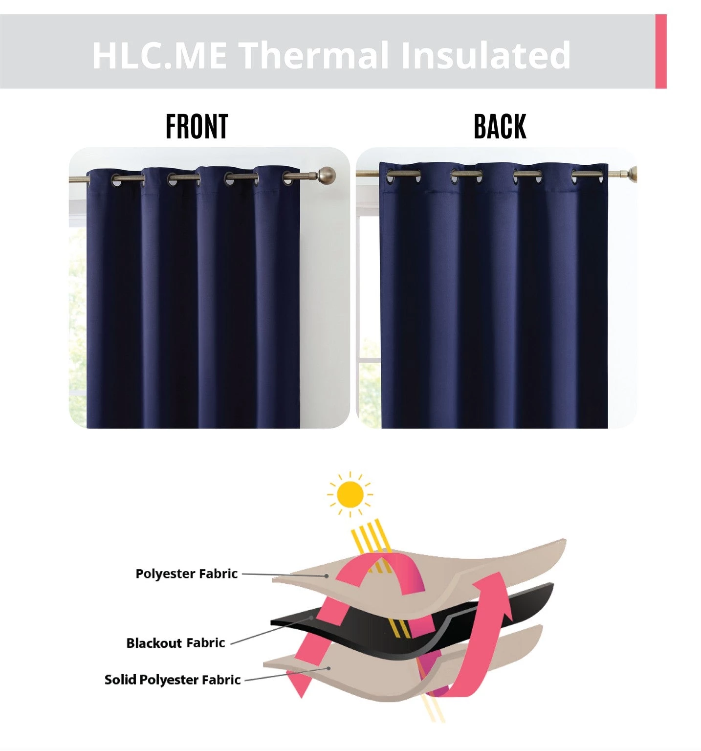 HLC.ME Oxford Blackout Grommet Curtain Panels (Navy Blue) – Set Of 2