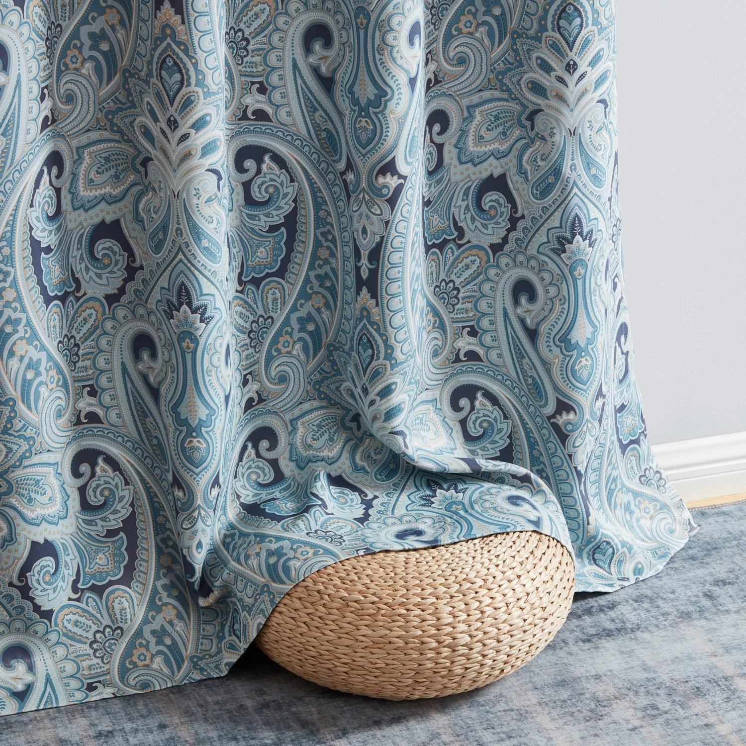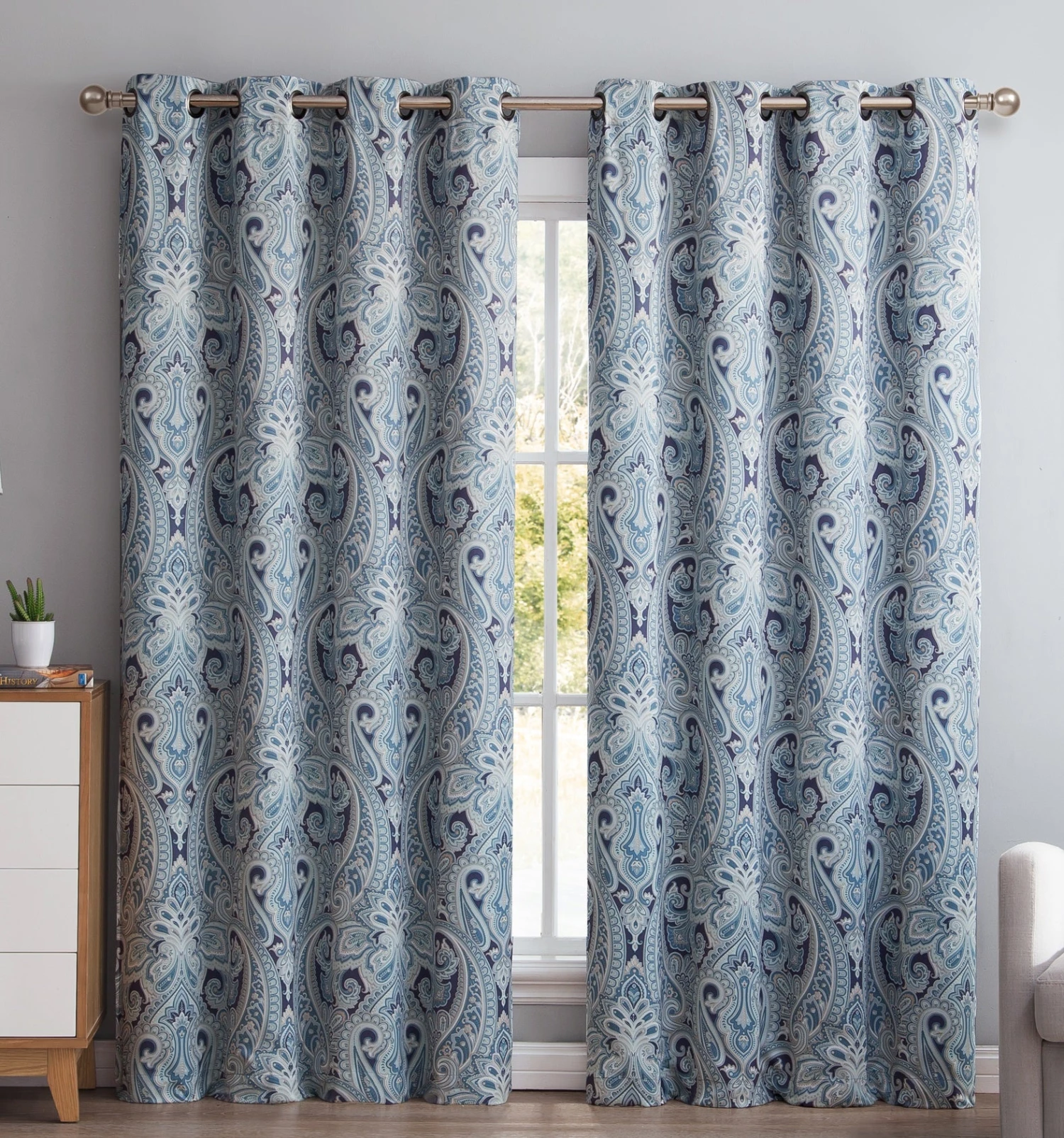 These paisley blackout grommet top curtains are manufactured as a triple weave technology. A triple weave technology is a denser fabric and is tightly sewn together with black yawns to insulate the heat and cold from entering and to achieve its blackout capabilities. The blackout grommet top curtain panel blocks out 85% of light for a great night sleep. Perfect for anyone who is a daytime sleepers who works at night and for any afternoon naps. A great add to a living room, bedroom, childs room, playroom and workplace.