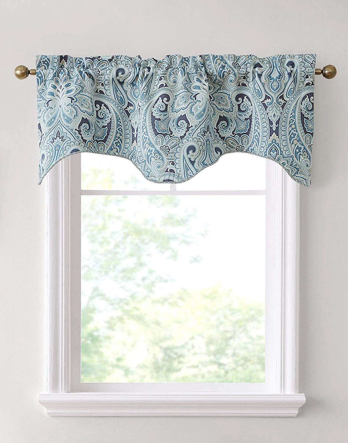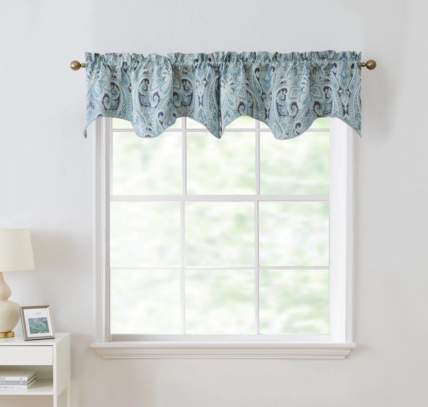 HLC.ME Paris Paisley Scalloped Valance – Blue Faux Linen Curtains